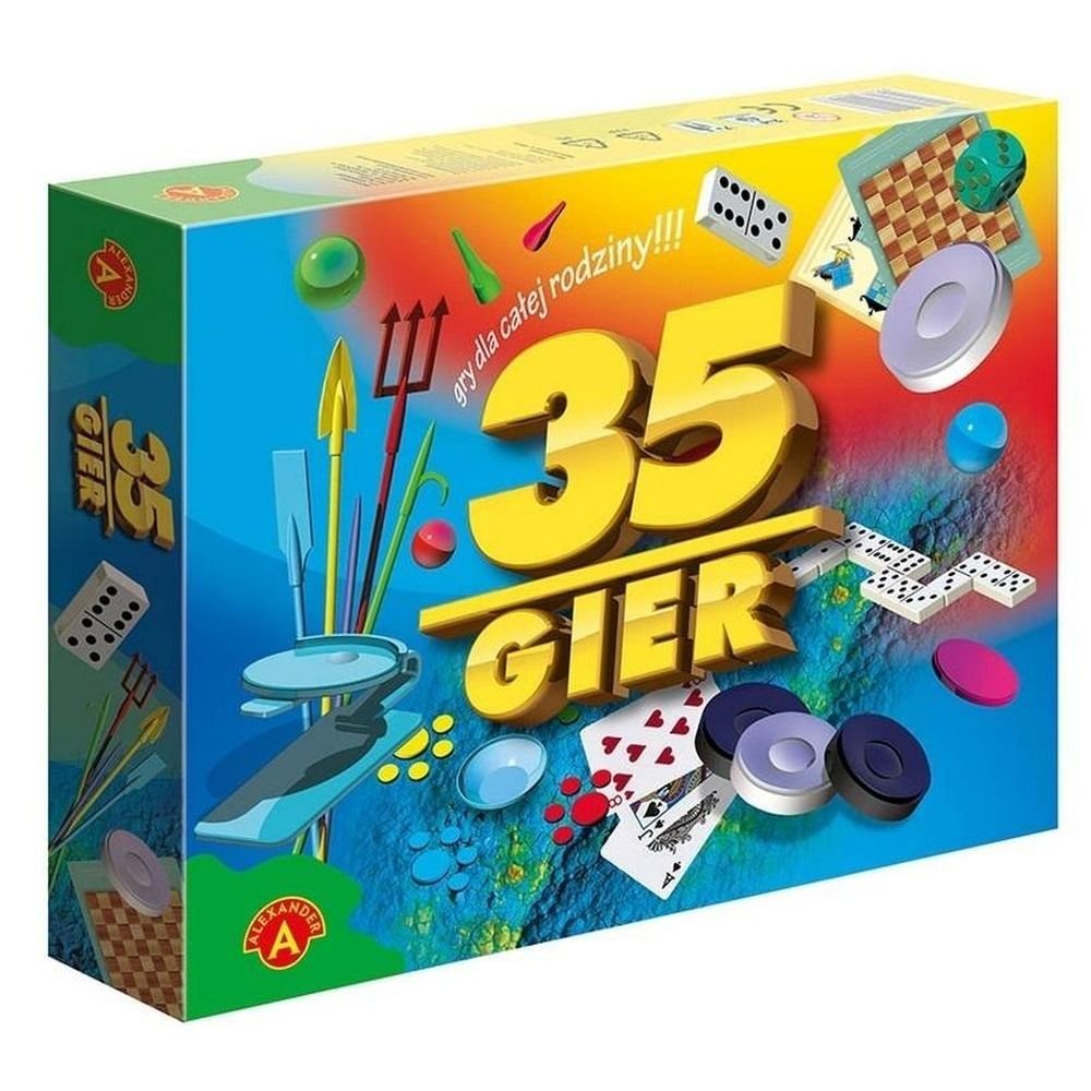 "35 gier" to bogaty i zróżnicowany zestaw gier. Zawiera gry proste jak klasyczny "Chińczyk", budzący zawsze wiele emocji zarówno u dzieci jak i dorosłych.