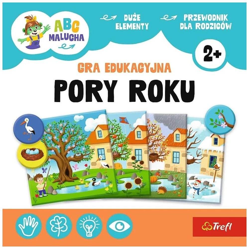 Pory roku to edukacyjna gra, która porządkuje wiedzę maluchów na temat zmian, jakie zachodzą w ciągu roku. Pięknie ilustrowane planszetki oraz żetony z elementami charakterystycznymi dla każdej z pór roku pozwolą dziecku ćwiczyć zdolności poznawcze, spostrzegawczość i logiczne myślenie. Podczas wesołej zabawy maluch poszerza zakres wiedzy i zasób słownictwa dotyczący poszczególnych pór roku.