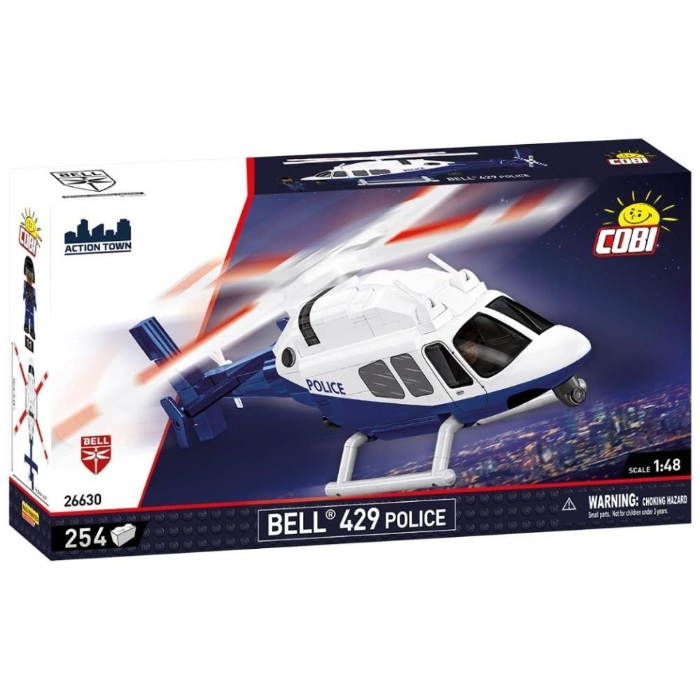COBI- 26630 BELL 429 – POLICE ACTION TOWN 254 elementów Grupa wiekowa 7+ Skala: 1:48. Model Bell 429- Police uzupełnia odświeżoną kolekcje ACTION TOWN od COBI! Bell 429 to maszyna charakteryzujący się wyjątkową prędkością, zasięgiem oraz osiągami w zawisie. Jego niezawodność i wydajność czynią go nieocenionym narzędziem w akcjach, gdzie każda sekunda ma znaczenie. Zestaw w skali 1:48 pozwala stworzyć model wielozadaniowego śmigłowca, który wykorzystywany jest na całym świecie przez służby policyjne i ratunkowe. Model BELL 429 – Police, wyposażony w charakterystyczne oznaczenia i innowacyjne detale, doskonale odwzorowuje autentyczną wersję wykorzystywaną przez służby mundurowe. Dzięki intuicyjnej instrukcji młodsi i starsi pasjonaci budowania będą mogli łatwo stworzyć ten imponujący model. Ten wyjątkowy helikopter, składający się z 254 elementów, oferuje wierność oryginałowi oraz nowe, specjalnie zaprojektowane dla tego modelu klocki, takie jak kokpit śmigłowca. Bell 429 – Police to model, który łączy w sobie pasję do maszyn latających, edukację i świetną zabawę. Idealny prezent dla każdego fana helikopterów, klocków i modeli! Sprawdź i wyszukaj inne pojazdy z serii ACTION TOWN od COBI i twórz własną kolekcję niezawodnych maszyn! 254 wysokiej jakości elementy, Wyprodukowane w UE przez firmę z ponad 35-letnią tradycją, Spełniają normy bezpieczeństwa dotyczące produktów dla dzieci, W pełni kompatybilne z innymi markami klocków konstrukcyjnych, Czytelna i intuicyjna instrukcja oparta na rysunkach i ikonach, Wymiary modelu: 24 8,0 16,5 cm Wymiary pudełka: 33,2 6,0 18 cm.