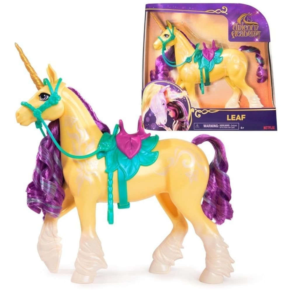 Uzupełnij swoją kolekcję lalek z serii Akademia Jednorożców o jednorożca Avy, Listkę! Zainspirowany serialem animowanym NETFLIX i bestsellerową serią książek o przyjaźni, ten 27 cm zabawkowy jednorożec ożywia łagodną, kochającą Listkę. Oddana z wielką dbałością o szczegóły Listka ma perłowe oznaczenia Magii Roślin na boku, majestatyczny błyszczący róg, kolorową grzywę i ogon oraz zdejmowaną uzdę i siodło, co zwiększa możliwości zabawy. Delikatnie poruszaj głową Listki, aby wydobyć jej osobowość i przeżyj magiczne doświadczenie więzi między jednorożcem a dosiadającą go Avą. Wyszczotkuj miękką grzywę i ogon Listki za pomocą narzędzia do stylizacji włosów Avy (brak w zestawie, sprzedawane osobno z lalką) i ruszaj na przygodę, aby chronić Wyspę Jednorożców i jej magię! Aby uzyskać więcej sposobów na poznanie Akademii Jednorożców i ulubionych postaci, poszukaj lalek Isabel i Sophii oraz ich jednorożców, Wirka i interaktywnej Gwiazdy (każdy sprzedawany osobno), aby rozbudować świat znany z książek i serialu! Magiczne więzi między uczniami Akademii Jednorożców i ich wierzchowcami pobudzą wyobraźnię do tworzenia niekończących się historii. Zabawki z serii Akademia Jednorożców to wspaniałe prezenty świąteczne lub okolicznościowe dla dzieci, które lubią zabawkowe jednorożce i konie, lalki i akcesoria, domki dla lalek, przedmioty kolekcjonerskie, pluszaki i nie tylko. Przynieś do domu magię Akademii Jednorożców z Listką!