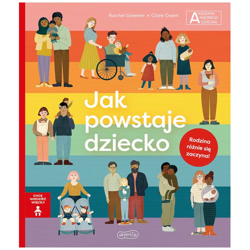 Każdy człowiek na świecie był najpierw dzieckiem i dorastał w czyimś brzuchu. Skąd się jednak tam wziął? "Jak powstaje dziecko" to potrzebna, bogato ilustrowana książka ułatwi rodzicom i opiekunom rozmowy na temat płci i rozmnażania. Rzetelne informacje podaje w sposób zrozumiały dla kilkulatka i pomaga taktownie je przekazywać. Zaspokaja ciekawość, uczy nazywać intymne części ciał i uświadamia, jak różne bywają rodziny i skąd NAPRAWDĘ biorą się dzieci. To doskonały przewodnik o tym, jak powstają dzieci – przejrzysty dla małych i pomocny dla dużych, którzy chcieliby odpowiedzieć najmłodszym na ich ciekawość związaną z rozmnażaniem i seksualnością – przyznaje Agata Kozłowska, seksuolożka, edukatorka, terapeutka, która podjęła się przetłumaczenia tej książki na język polski. Jeśli uważacie, że wytłumaczenie podstawowych faktów z biologii z uwzględnieniem najnowszych osiągnięć nauki nie może być proste, ciekawe i czułe (!), to znaczy, że nie znacie jeszcze tej wspaniałej książki, w której przedział wiekowy, powiedzmy to sobie szczerze, tak naprawdę nie istnieje. Przemek Staroń psycholog, autor książek, Nauczyciel Roku Książka "Jak powstaje dziecko" jest kolejną pozycją w serii Chcę wiedzieć więcej! Akademii Mądrego Dziecka, skierowanej do młodych czytelników, pragnących zaspokoić swoją ciekawość w różnych dziedzinach nauki w niecodzienny i intrygujący sposób. Akademia Mądrego Dziecka. Chcę wiedzieć więcej! to seria książek popularyzujących naukę przeznaczona dla starszych przedszkolaków oraz uczniów szkół podstawowych. Dzięki bogatym, kolorowym ilustracjom i ciekawej formie książki wpisują się w zdobywający popularność nurt edukacji edutainment (od angielskiego education – nauka oraz entertainment – rozrywka), którego podstawowym celem jest edukacja poprzez rozrywkę. Poruszana tematyka oraz przystępna forma przekazywania treści sprawiają, że są to doskonałe książki na prezenty czy nagrody, podobnie jak w innych cyklach Akademii Mądrego Dziecka przeznaczonych dla starszych dzieci: Przygody z nauką, Chcę wiedzieć, Pomóż mi przetrwać, Wiem, co jem. W ramach serii Chcę wiedzieć więcej ukazały się również tytuły: – Sekrety zmarłych – Jak zostać szpiegiem – Co robimy, gdy śpimy? – Wycieczka po mózgu – Od mitów do nauki
