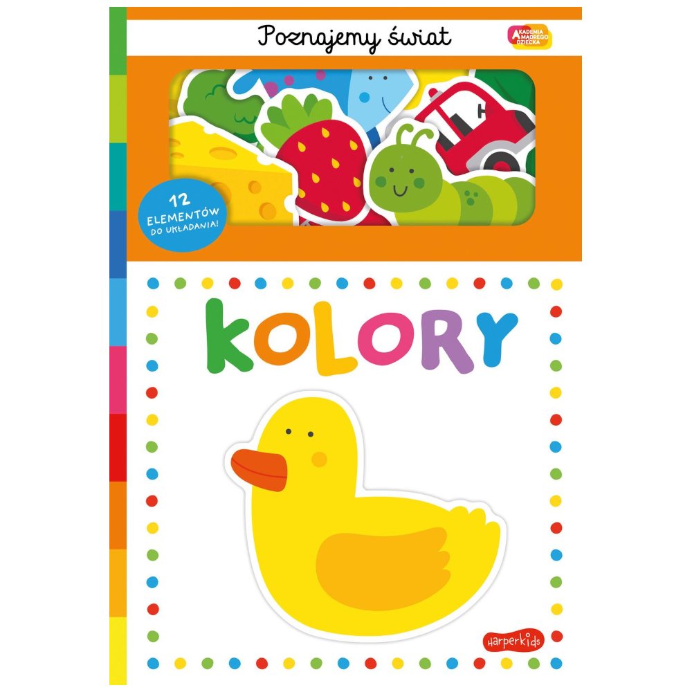 Idealny zestaw dla maluchów – w pudełku znajduje się książeczka ucząca o kolorach. Każda rozkładówka pokazuje jeden kolor oraz rzeczy z nim związane. Dodatkowo dzieci muszą dopasować puzzle do każdego koloru, co jest świetną zabawą, a dodatkowo utrwala wiedzę o kolorach. Seria książeczek Poznajemy świat z Akademii Mądrego Dziecka pokazuje i uczy świata, dodatkowo ćwicząc małą motorykę i pomagając w skupieniu.