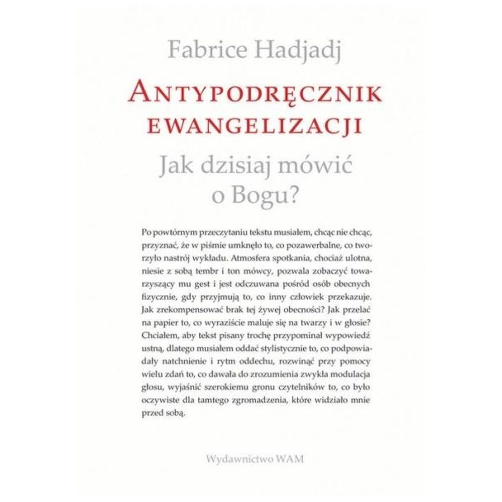 Fabrice Hadjadj w przewrotny i błyskotliwy sposób dowodzi, że w ewangelizacji nie chodzi o “skuteczne” głoszenie Ewangelii dzięki wykorzystaniu nowoczesnych technik i środków przekazu. Dobra Nowina jest “spoza tego świata”, nie da się o Niej mówić jak o rosole czy piłce nożnej.