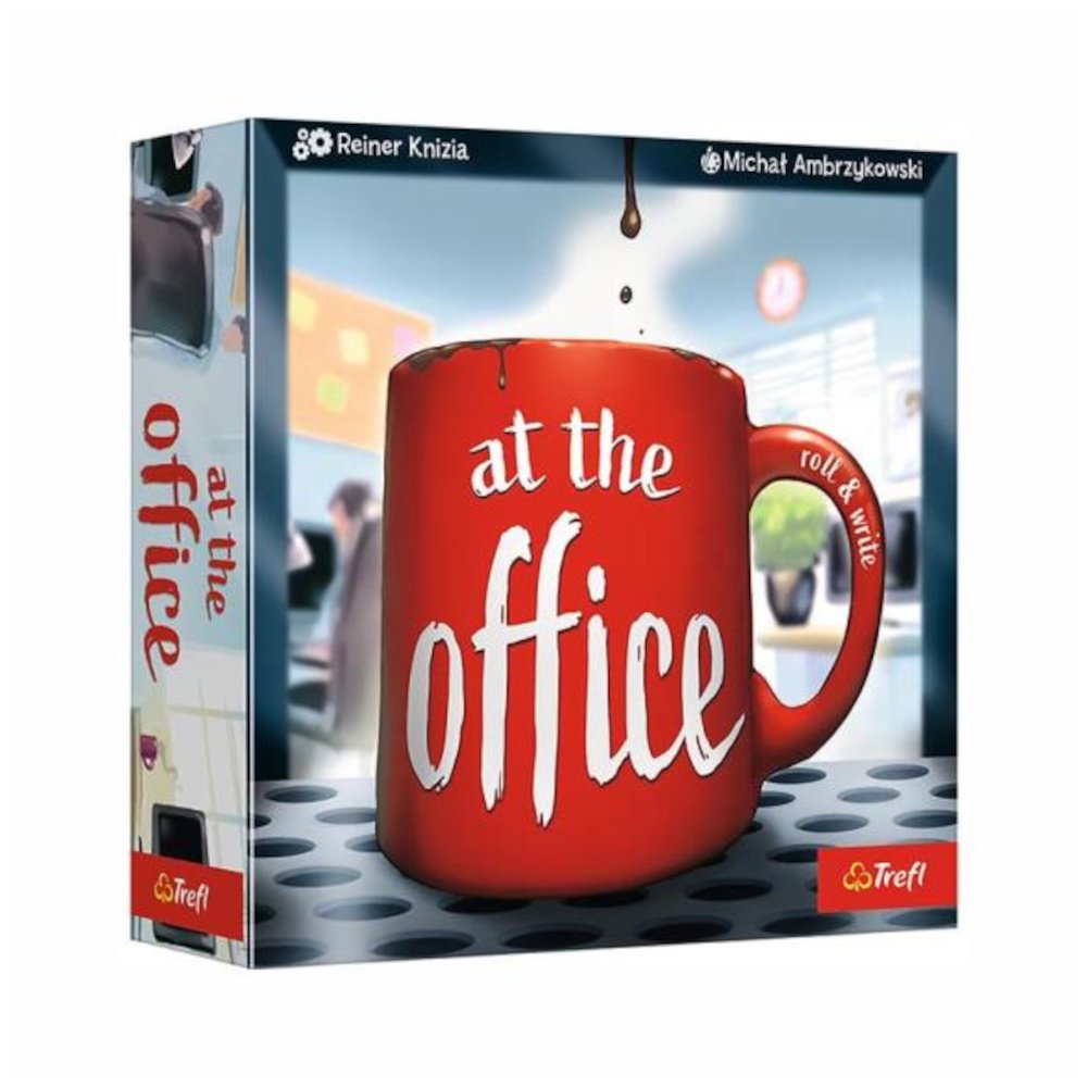 At the Office to gra typu roll&write, w której gracze ścigają się o miano najlepszego szefa! Rzucasz kolorowymi kośćmi, a następnie przypisujesz wybrany wynik jednemu z pracowników w biurowej piramidzie. Kości przypisane do zwierzchników powinny wskazywać wyższy wynik niż te przypisane do podwładnych. Aby zebrać jak najwięcej punktów zwracaj też uwagę na możliwe do zdobycia bonusy.