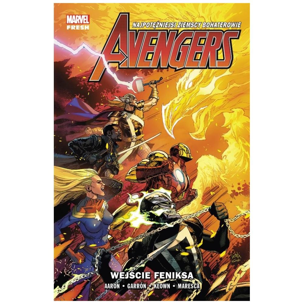 Ósmy tom przygód Avengers z serii wydawniczej Marvel Fresh! Phoenix powraca! Ognista istota z otchłani kosmosu, zdolna niszczyć całe planety, szuka nowego nosiciela – a chętnych nie brakuje! Podczas gdy najpotężniejsi ziemscy bohaterowie i złoczyńcy zaciekle rywalizują o jej moc, Thor prowadzi do boju drużynę Avengers, aby opanować to nowe zagrożenie. Ich misję komplikuje jednak tajemnicza więź łącząca Gromowładnego z Phoenix Autorem tej opowieści jest Jason Aaron, zdobywca Nagrody Eisnera i innych najważniejszych komiksowych wyróżnień, znany z takich serii jak: "Skalp", "Thor Gromowładny" i "Potężna Thor", "Punisher Max" czy "Conan Barbarzyńca". Rysunki stworzyli między innymi Javier Garrón ("Inhumans kontra X-Men", "Śmierć X"), Dale Keown ("The Incredible Hulk") oraz Luca Maresca. Album zawiera materiały opublikowane pierwotnie w zeszytach #39-45 serii "Avengers".
