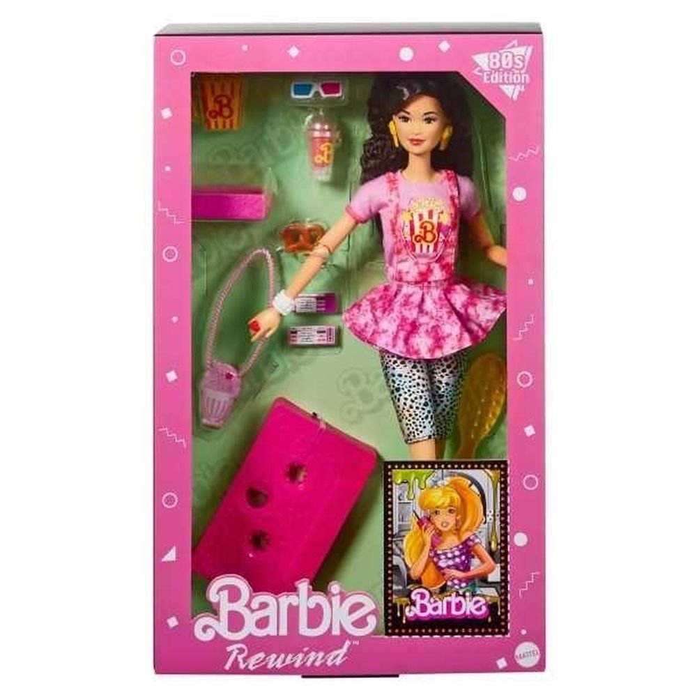 Kultowa seria Barbie Rewind nadal czerpie inspirację z lat 80. XX wieku, upamiętniając najlepsze stylizacje dekady. Motyw wieczoru filmowego z lat 80., urokliwe detale i przepiękny wygląd sprawiają, że ta lalka to hit wśród kolekcjonerów. Sprzedawane oddzielnie w zależności od dostępności. Lalka Barbie(R) nie stoi samodzielnie. Kolory i elementy dekoracyjne mogą się różnić.