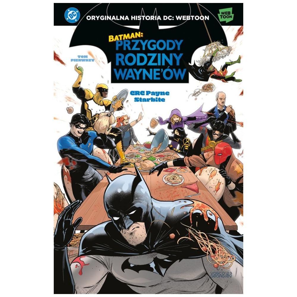 Batman ma dużo na głowie. Nightwing, Batgirl, Red Hood, Orphan, Spoiler, kilku Robinów Bruce Wayne nie może narzekać na brak dzieci – biologicznych i nie tylko. A teraz, gdy do rodziny dołącza Duke Thomas, nowy samozwańczy pogromca zbrodni używający pseudonimu Signal, w rezydencji Wayne'ów robi się naprawdę tłoczno. Poznaj szalone, chwytające za serce przygody ludzi, którzy pokazują, czym tak naprawdę jest rodzina. Napisany przez CRC Payne i zilustrowany przez Starbite album zawiera 25 rozdziałów nominowanej do Nagrody Eisnera serii, pierwotnie publikowanej na portalu Webtoon. W środku znajdują się także niepublikowane wcześniej, przygotowane specjalnie przez autorów materiały!