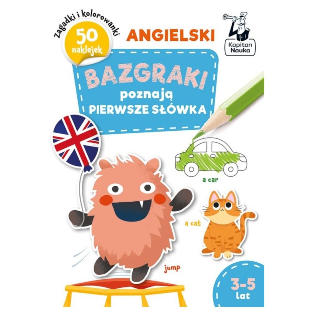 Bazgraki poznają angielski. Pierwsze słówka (3-5 lat) to pomysłowe zabawy, dzięki którym przedszkolaki rozpoczną przygodę z językiem angielskim i poznają najważniejsze słówka, m.in. nazwy zwierząt, kolorów, warzyw i owoców, pojazdów oraz zabawek.