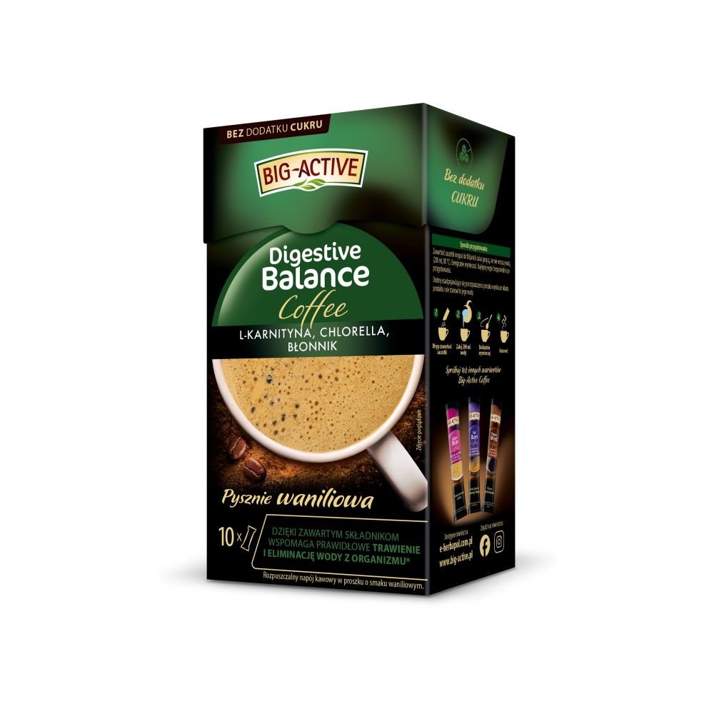 To aromatyczny napój kawowy na bazie czarnej kawy o pysznym waniliowym smaku. Wzbogacona o funkcjonalne składniki wspierające trawienie i eliminację wody z organizmu takie, jak: błonnik, chlorella, korzeń mniszka lekarskiego oraz L-karnityna. Bez dodatku cukru. Pakowana w pojedyncze saszetki – idealne do pracy, w podróży, na co dzień.