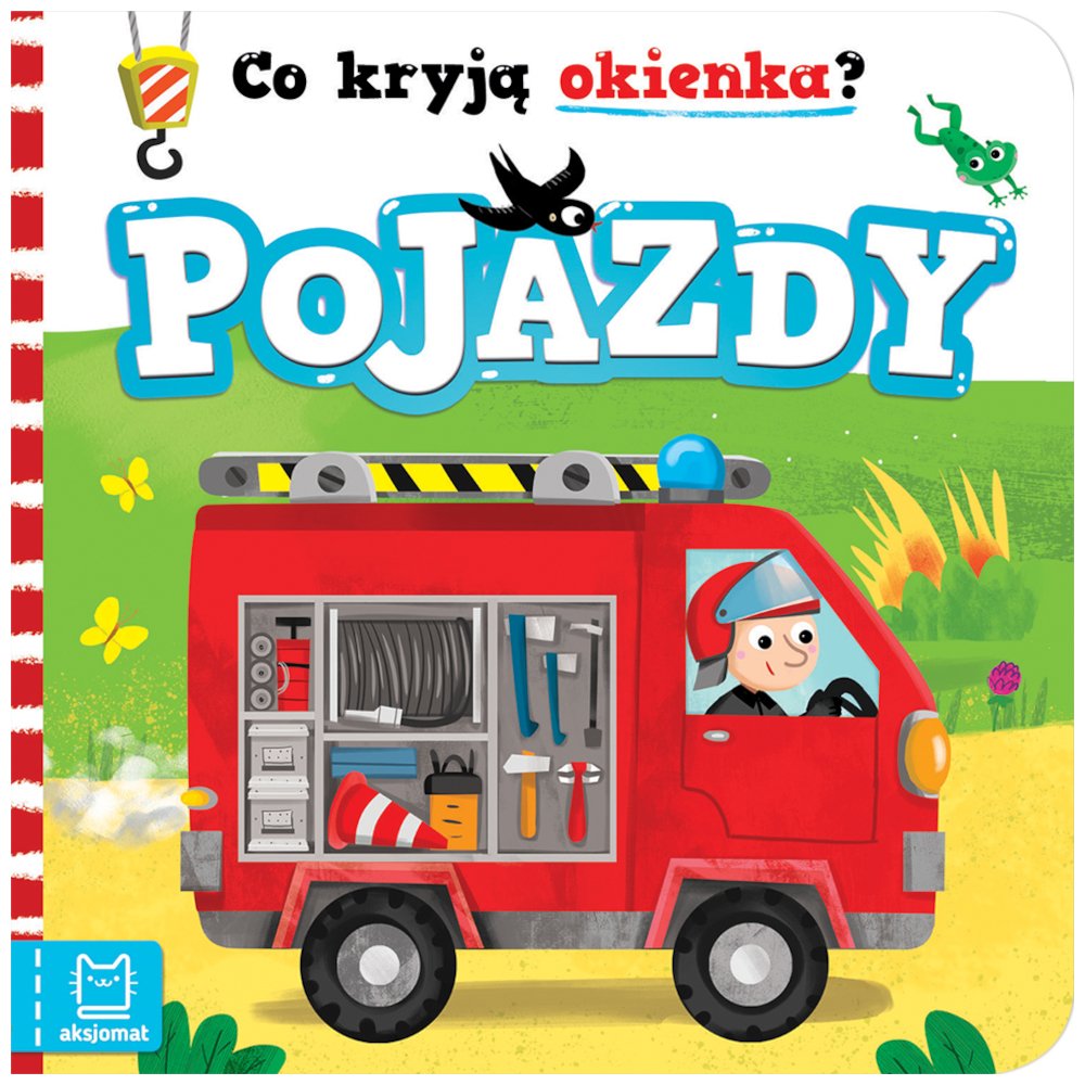 Co pędzi do pożaru, a co przywiezie na budowę piasek? Otwórz okienka i sprawdź, jakie pojazdy ukryły się w książeczce.