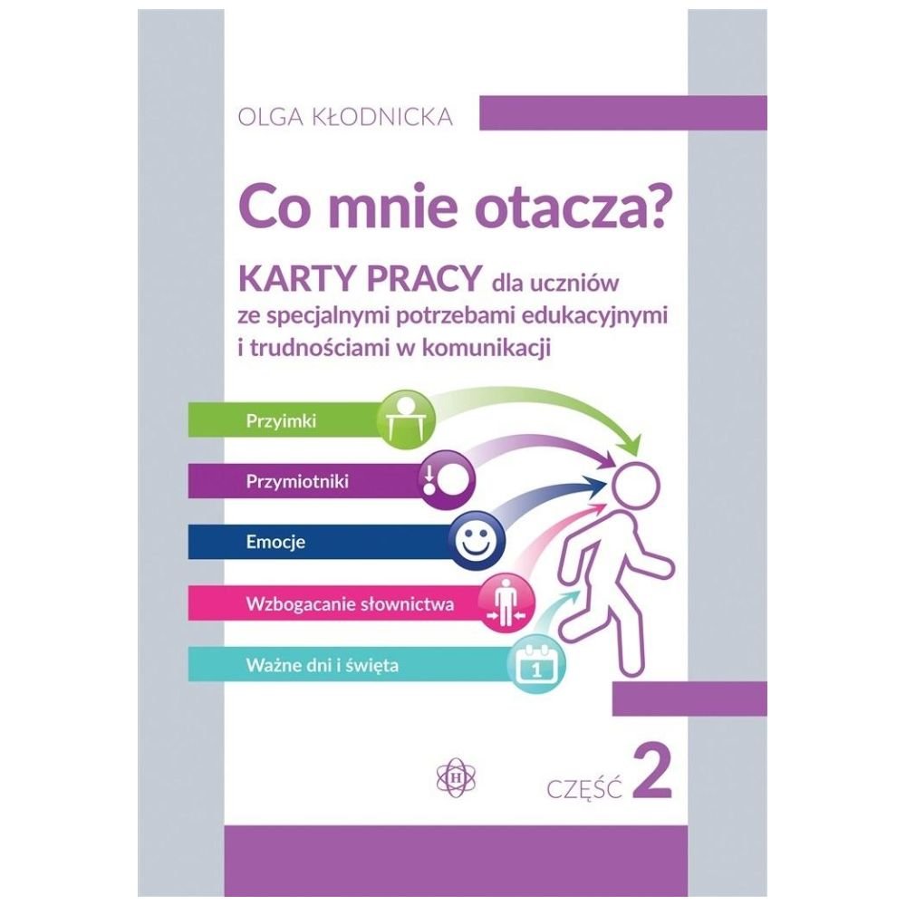Prezentowana publikacja powstała, aby pomóc w codziennej terapii dzieci ze specjalnymi potrzebami edukacyjnymi i trudnościami w komunikacji. Materiał prezentowany na kartach pracy jest spójny i nie obejmuje zbędnych, zakłócających percepcję treści. W każdym dziale wprowadzono najważniejsze słowa i pojęcia, a w ostatnim ważne dni i święta. Miniaturki obrazków znajdujące się na każdej karcie nie pozwalają zapomnieć o wcześniej omawianym materiale. Wszystkie działy są zakończone sprawdzianami wiadomości, które pozwolą rodzicowi bądź terapeucie ocenić, czy przedstawione treści zostało przez dziecko zapamiętane i zrozumiane.