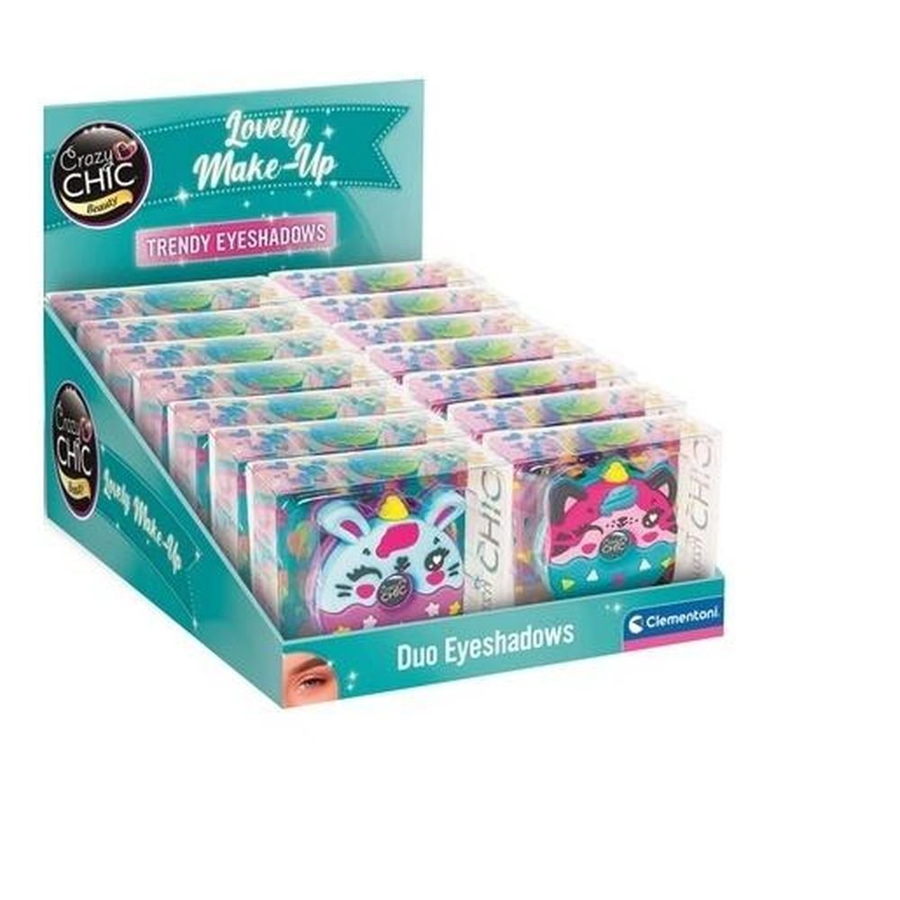 Mała paletka w kształcie słodkiego donata mieszcząca zestaw do makijażu. Dzięki kompaktowej formie możesz ją mieć zawsze przy sobie. Paletka zawiera dwa cienie do powiek i jeden aplikator. Słodki donat ma kolorowy rożek wyróżniający linię Lovely z kolekcji Crazy Chic. Zbierz całą kolekcję! Kosmetyki gwarantują w pełni bezpieczną zabawę, zostały przetestowane, nie stanowią zagrożenia, nie powodują alergii i nie mają szkodliwego działania; można je łatwo zmywać wodą. Zabawka kreatywna do malowania twarzy, zalecana dla dzieci od szóstego roku życia.