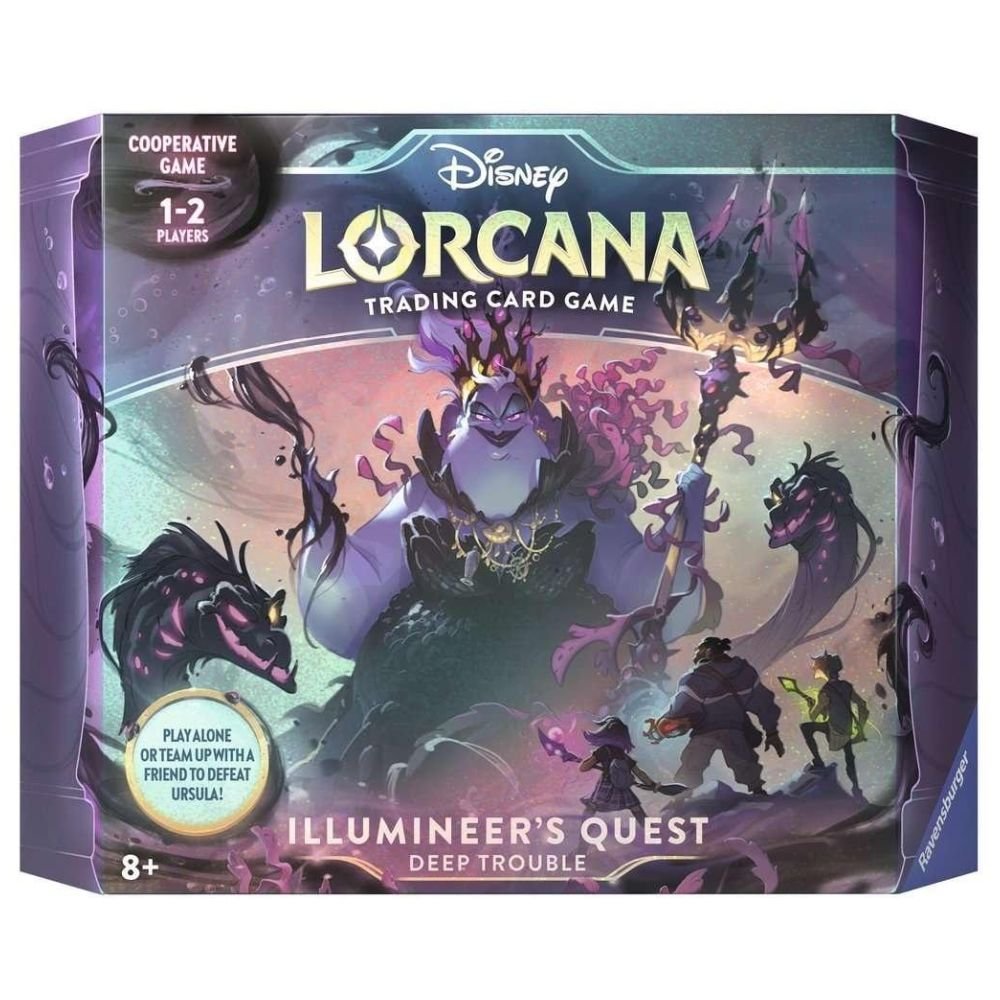 Urszula opanowała krainę Lorcana – czy stawicie jej opór? Illumineer's Quest – Deep Trouble to zestaw do gry kooperacyjnej przeciwko autonomicznie prowadzonej talii Urszuli. Gracze mogą podczas rozgrywki skorzystać z talii dołączonych do zestawu albo wykorzystać swoje talie Disney Lorcana. Rozgrywka prosto z pudełka jest możliwa w 1 lub 2 osoby, a jeśli posiadacie dodatkowe dwie talie to grać może maksymalnie 4 graczy. Rozgrywkę można prowadzić na czterech poziomach trudności.