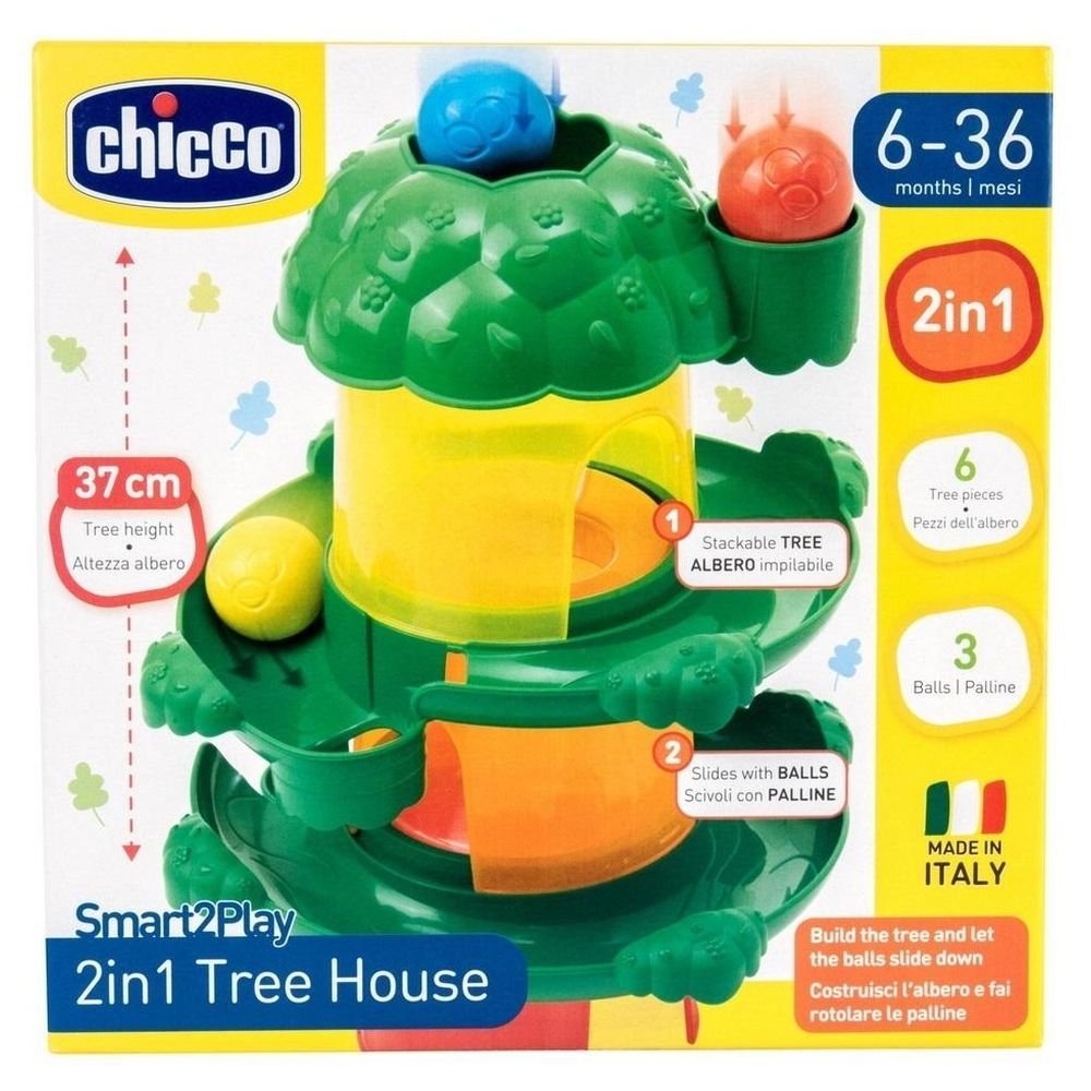 DOMEK NA DRZEWIE to zabawka, którą można układać z kilku elementów na kilka sposobów. Dziecko może przekładać kubeczki oraz zjeżdżalnie i tworzyć nowe trasy.