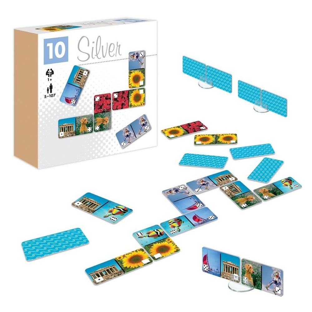 Domino Silver to seria klasycznych gier składających się z prostokątnych tabliczek, przedzielonych na pół za pomocą różnej grafiki. Zabawa polega na właściwym dopasowaniu elementów prezentujących ten sam obrazek. Wygrywa w niej ten, kto pierwszy pozbędzie się swoich tabliczek, przez dokładanie ich do odpowiedników leżących na stole. Większy niż standardowo rozmiar tabliczek ułatwia chwytanie.