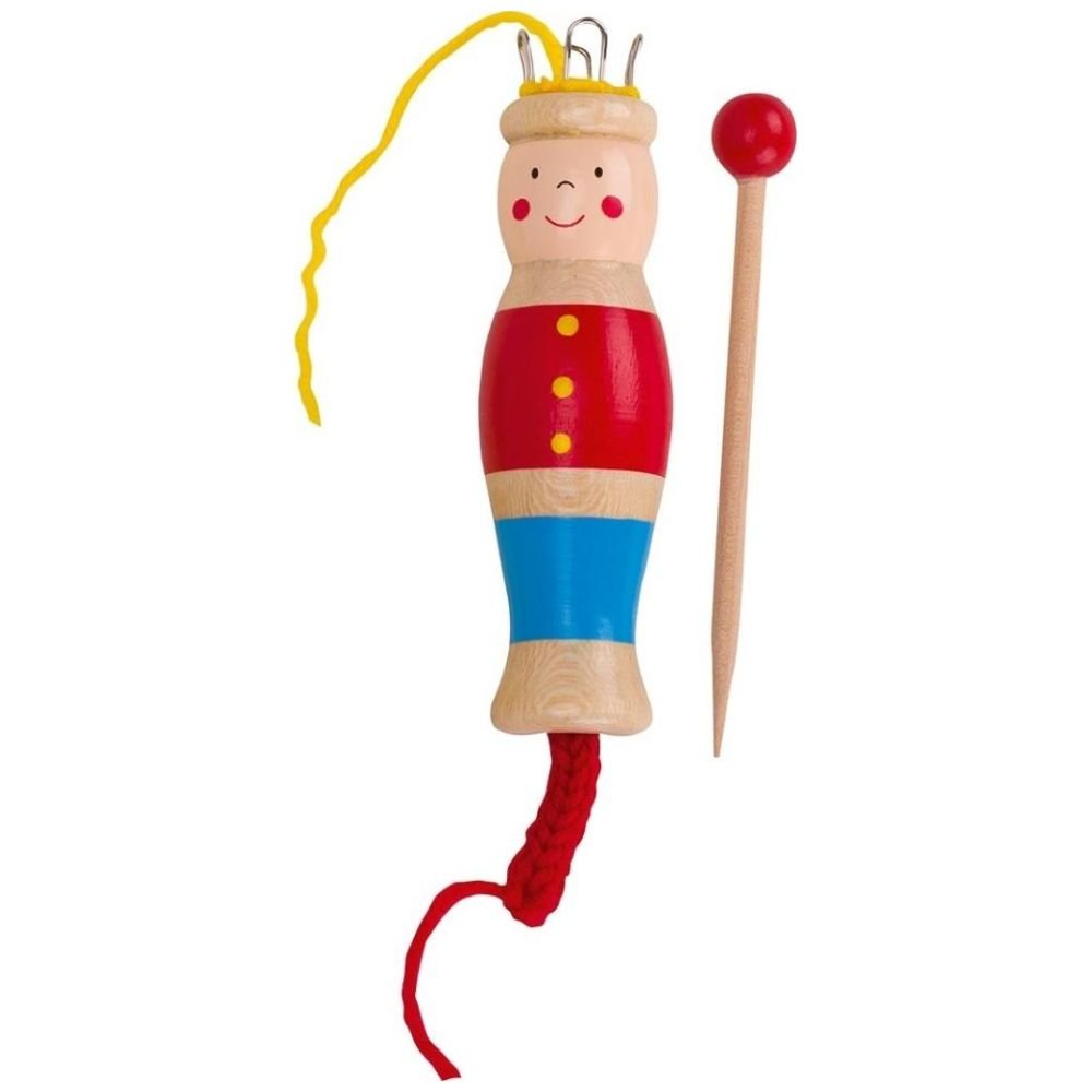 "To drewniany grzybek do plecenia i tkactwa, wyposażony w cztery uchwyty, który umożliwia tworzenie unikalnych ozdób, takich jak bransoletki, zakładki do książek, biżuteria oraz wiele innych. Dzięki tej zabawce dzieci rozwijają zdolności manualne, doskonalą koordynację ruchową i wzrokową, oraz uczą się skupienia.