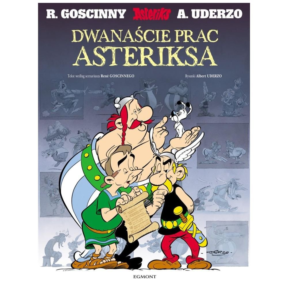 Zabawne nawiązanie do mitu o Herkulesie i jego dwunastu pracach. Juliusz Cezar nie może pokonać walecznych Galów z małej wioski w Armoryce. Członkowie senatu rzymskiego, by ocalić honor władcy imperium, wysuwają przypuszczenie, że Galowie mogą być bogami i dlatego tak wybitny wódz nie jest w stanie ich podbić. Juliusz Cezar pragnie jednak udowodnić, że jest inaczej. Udaje się na spotkanie z Asparanoiksem i proponuje Galom pewien układ. Jeśli wykonają dwanaście prac, czyli niezwykłych czynów, do których zdolni są tylko bogowie, cały Rzym odda im hołd. Jeśli jednak nie wypełnią choćby jednego zadania, poddadzą się władzy Cezara i na zawsze będą niewolnikami. Asteriks i Obeliks oczywiście podejmują wyzwanie.