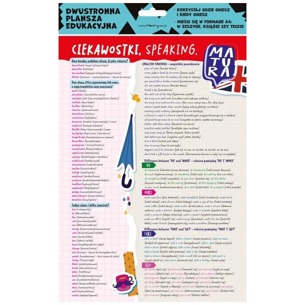 Dwustronna plansza/ściąga A4 J. ang. ciekawostki