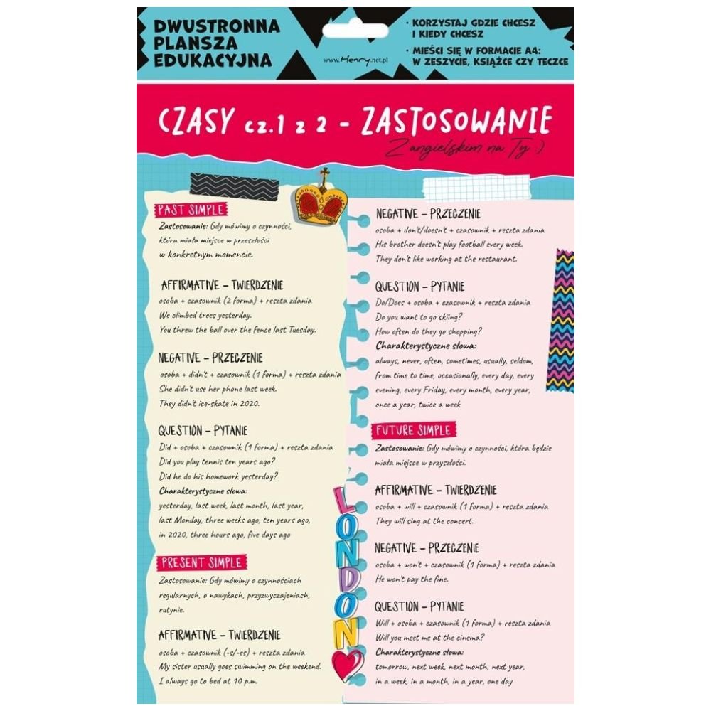Dwustronna plansza/ściąga A4 J. ang. czasy cz.1