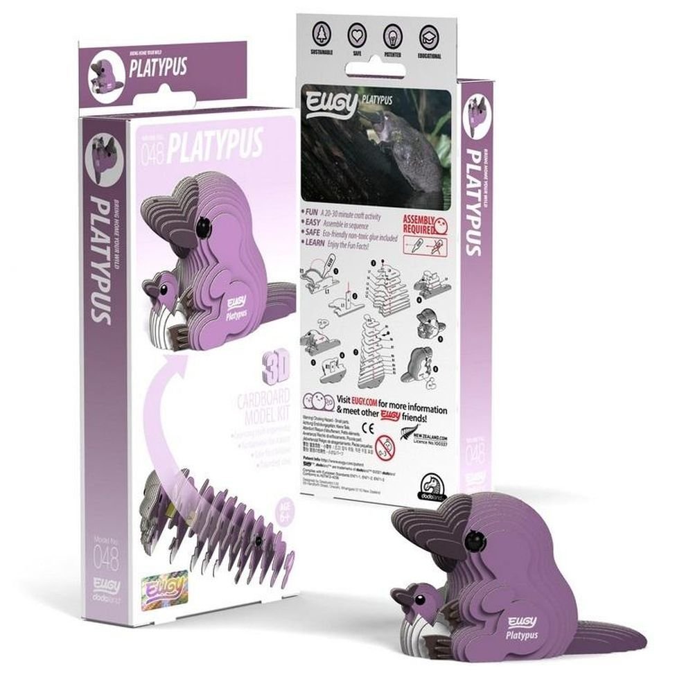 Eugy zaprojektowane w Nowej Zelandii są wykonane z przyjaznego dla środowiska kartonu pochodzącego z recyklingu i farby na bazie ryżu. Zestaw zawiera ponumerowane elementy układanki, nietoksyczny klej oraz instrukcję do zbudowania dziobaka. Zbierz całą serię zwierząt, ptaków, dinozaurów i wiele innych. Dla dzieci w wieku 6 lat+.