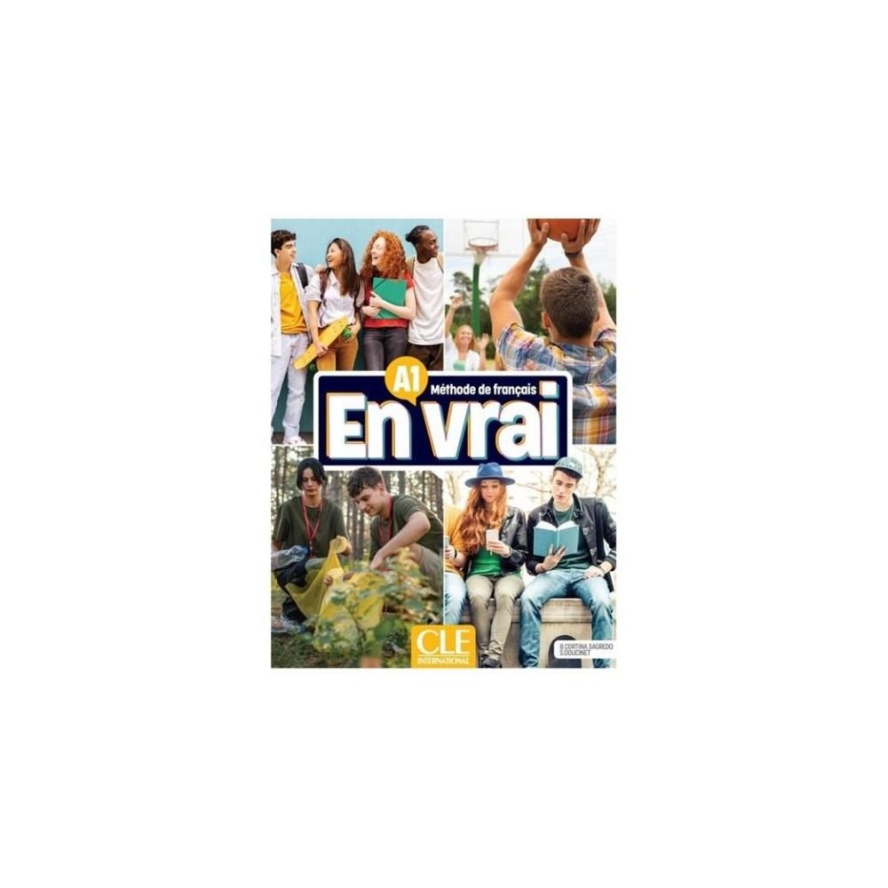 Podręcznik En vrai przeznaczony dla młodzieży do nauki języka francuskiego, obejmuje poziom A1.