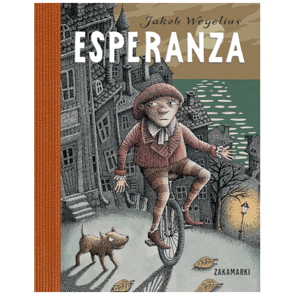 Halidon obudził się i momentalnie poderwał w hamaku. Rozejrzał się dokoła w ciemnościach, nasłuchując i węsząc. Radio cicho szumiało, a z pieca dolatywał zapach dogasającego żaru. Przez okno wpadał do mieszkania blady snop księżycowego światła, a gdzieś w dali dało się słyszeć bicie zegara. Halidon od razu poczuł, że coś jest nie tak Halidon, sztukmistrz na monocyklu, choć niewielki wzrostem, ma wielkie serce. Zaniepokojony nieobecnością swojego przyjaciela Kapitana, nie zważając na późną porę, wyrusza na poszukiwania. Tej zimnej nocy nie wszyscy napotkani ludzie okażą się przyjaźni, a w ciemnych uliczkach portowego miasta nie zawsze będzie bezpiecznie. Jednak niespodziewanie Halidon spotka również kogoś, kto wiernie będzie mu towarzyszył, to nieśmiało, to zuchwale merdając patykowatym ogonem. To trzecie już spotkanie polskich czytelników ze szwedzkim autorem i ilustratorem Jakobem Wegeliusem. Po graficznej powieści pełnej hipnotyzujących ilustracji, która wprowadziła nas w świat przygód niezwykłej gorylicy ("Legenda o Sally Jones"), oraz zapierającej dech w piersiach monumentalnej sześciusetstronicowej kontynuacji jej historii ("Małpa mordercy"), nadszedł czas na nowego bohatera, nowe tajemnice, pościgi, ucieczki i kolejną fascynującą przygodę! Ale, ale – czy Halidon nie pojawił się już w jednej z poprzednich opowieści? Do spostrzegawczych świat należy! "Esperanza" to nie tylko książka dla starszych dzieci i nastolatków, z pewnością urzeknie też niejednego dorosłego czytelnika.