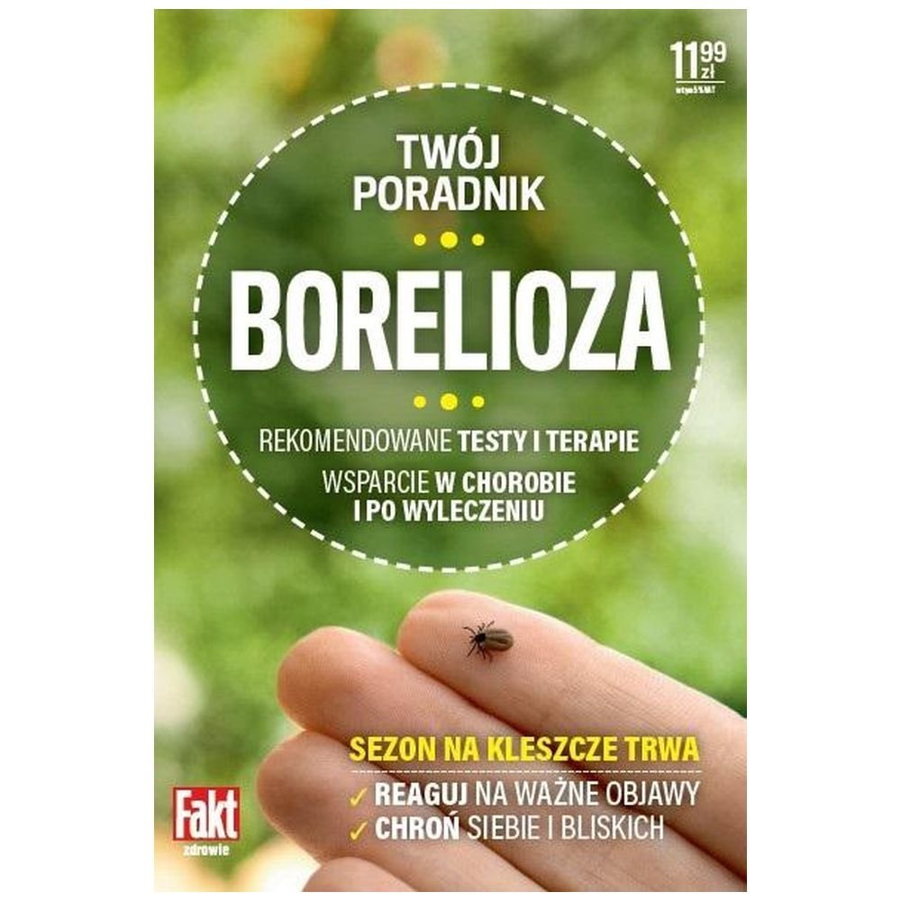 Boreliozę nazywa się coraz częściej cichą epidemią XXI wieku, a jej sprawcę, kleszcza, najgroźniejszym zwierzęciem w Europie. Przenosi on bowiem jedną z najbardziej podstępnych i uciążliwych chorób, boreliozę. Trudno ją rozpoznać, leczenie jest obciążające dla organizmu, a przykre objawy mogą dawać o sobie znać jeszcze długo po zakończeniu terapii. Kleszcz to wyjątkowo podstępny pajęczak, a jego atak łatwo przeoczyć – może przypominać ziarenko piasku, a miejsce po wkłuciu nie swędzi, nie boli i raczej nie robi się czerwone, jak w przypadku ugryzienia komara czy meszki. Jeśli ten moment nam umknie lub go zbagatelizujemy, a kleszcz wpuści do naszego organizmu groźne krętki Borrelia, to problemy zdrowotne mogą ciągnąć się latami. Dlatego trzeba wiedzieć, jak się chronić i jak reagować, gdy dojdzie do spotkania z kleszczem. W tym pomóc ma ten poradnik.