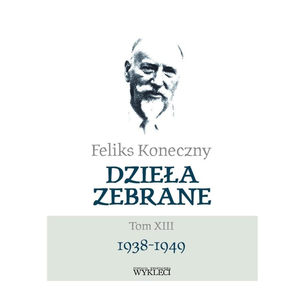 Tom XIII "Dzieł zebranych" Feliksa Konecznego obejmuje prace Profesora opublikowane u kresu jego życia – w latach 1938-1949. Wydano w tym czasie popularyzatorską książkę "Święci w dziejach narodu polskiego", w której Koneczny osadził postaci świętych, błogosławionych i osób świątobliwych w historii Polski, ukazując nierozerwalny związek między katolicyzmem a polskością. Tematyce wpływu religii na cywilizację poświęcone zostały także dwa istotne teksty: "Kościół jako polityczny wychowawca narodów" oraz "Protestantyzm w życiu zbiorowym". Ponadto w tomie XIII można znaleźć artykuły, które Feliks Koneczny publikował w okresie powojennym na łamach czasopism "Odra", "Niedziela" oraz "Tygodnik Warszawski". Poświęcił w nich wiele miejsca idei samorządności gospodarczej i terytorialnej, systemowi edukacji, rzemiosłu, jak również syntetycznemu przedstawieniu poszczególnych aspektów swej teorii cywilizacji. Wchodził także w polemikę z materializmem i socjalizmem. Niniejszy tom wzbogacony jest dodatkowo o nigdy niepublikowane, a odnalezione w ostatnim czasie, dwie broszury Profesora: "Głos w sprawie przyszłej konferencji pokojowej po II wojnie światowej" z 1943 r. oraz "Historia Polski dla Orawiaków" z 1946 r. Wart szczególnej uwagi jest także artykuł "Warunki powodzenia historycznego Polski" ogłoszony drukiem na łamach prasy konspiracyjnej.