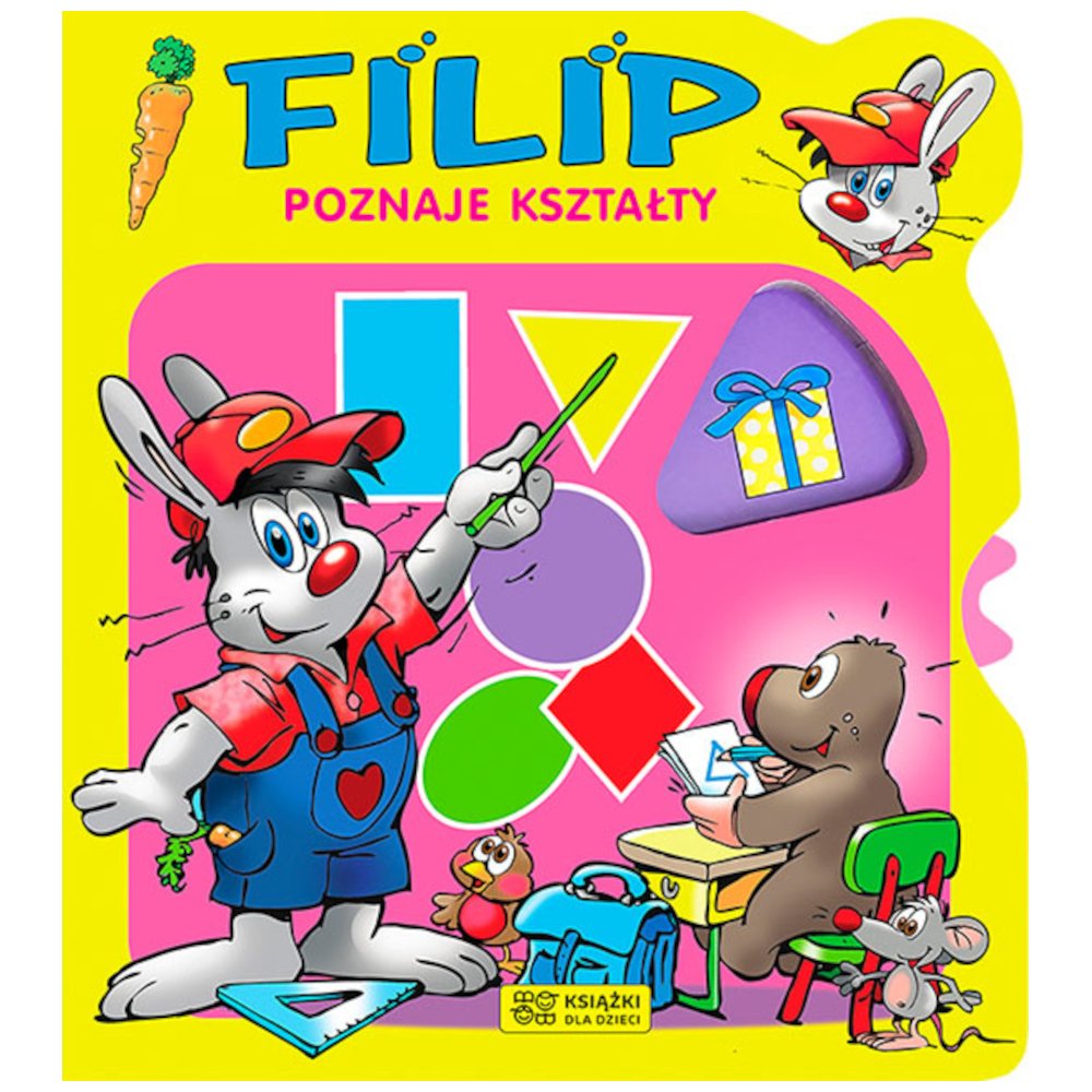 Jedna z serii czterech kartonowych książeczek dla dzieci od trzeciego roku życia. Proste teksty i wyraźne, tematyczne ilustracje zostały tak zaprojektowane, by maluch skupił się na omawianych tematach i poznał podstawowe kolory, kształty i przeciwieństwa oraz nauczył się liczyć do sześciu. Atutem każdej książeczki jest proste w obsłudze kółko, którym mały czytelnik ma tak długo kręcić, aż w okienku ukaże się szukany na danej stronie przedmiot. Filip i jego przyjaciele gwarantują dzieciom dobrą zabawę połączoną z przyjemną nauką.