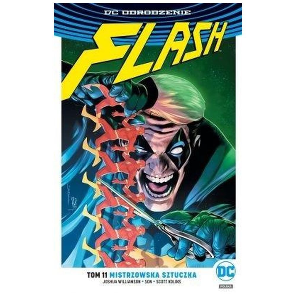 Jedenasta odsłona przygód Flasha z ramach linii wydawniczej DC Odrodzenie. Nikt nie potrafi robić takich numerów jak James Jesse, pierwszy Trickster. Jesse nie cieszył się szacunkiem jako jeden z Łotrów, aż w końcu zastąpił go inny, bardziej ekstrawagancki Trickster. Jednak nikt nie dorówna oryginałowi… a kolejna sztuczka Jessego na zawsze zmieni świat Flasha! Dotychczasowe życie Barry’ego Allena legło w gruzach z powodu śmierci bliskiego mu sprintera i zakończenia związku z Iris West. Teraz powraca do Central City i staje się świadkiem czegoś niespotykanego: wszyscy mieszkańcy są szczęśliwi. Niepokojąco szczęśliwi. Nienaturalnie szczęśliwi. Jednak Barry nie potrafi cieszyć się razem z nimi, gdy musi rozwikłać otaczające go tajemnice. Na dodatek zniknął Pułkownik Chłód, sprzymierzeniec Allena z przyszłości. Wszystkie tropy prowadzą do więzienia Iron Heights i to tam Barry rozpocznie swoje śledztwo. Ale jak to mówią, w dobrej sztuczce kluczowe jest zmylenie tropów. I gdy Flash sądzi, że rozwiązuje kolejną zagadkę, Trickster szykuje się, by tuż pod nosem Allena wyciąć numer wszech czasów… i stać się najsłynniejszym z Łotrów!
