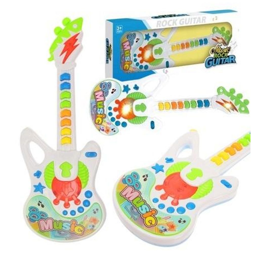 Instrument oferuje różnorodność melodii, co pozwala dziecku eksperymentować i odkrywać różne brzmienia. To świetny sposób na rozwijanie słuchu muzycznego. Podczas korzystania z gitary, dzieci doświadczają nie tylko różnorodnych dźwięków, ale także fascynujących efektów świetlnych! To element, który dodaje dodatkowej atrakcyjności instrumentowi.