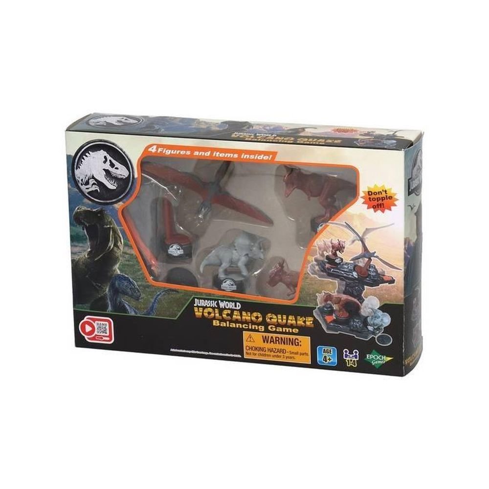 Gra w balansowanie ze sceną z motywem Jurassic World i kawałkami dinozaurów! Jurassic World Volcano Quake to prosta gra polegająca na balansowaniu. Rzuć medal i przesuń figurkę lub kawałek kamienia na scenę. Uważaj, aby nie zrzucić elementów ze sceny! W zestawie 4 figurki dinozaurów Jurassic World.