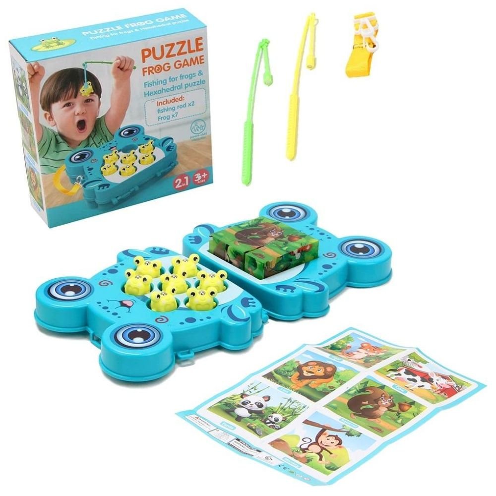 Zręcznościowa, magnetyczna gra łowienie 7 rybek. Z drugiej strony znajduje się miejsce na układanie klocków obrazkowGra łowienie rybek + klocki obrazkoweych.