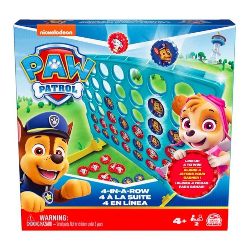 W grze Four in a Row wygrywa gracz, który jako pierwszy zdobędzie 4 żetony w rzędzie poziomym, pionowym lub po skosie, ale zawsze w linii prostej. Jeśli zdobędziesz 4 żetony w dowolnym z tych rzędów, zwyciężasz! Przygotuj się na spore emocje: Four in a Row to gra, która świetnie sprawdzi się zarówno na wakacjach, jak i na szkolnej przerwie. To także doskonała i łatwa gra planszowa na każdy rodzinny wieczór. Ta gra dla 2 graczy z serii Psi Patrol jest idealna dla dzieci w wieku od 4 lat. Podaruj w te święta chłopcu lub dziewczynce prezent w postaci gier planszowych z zabawkami z serii Psi Patrol!