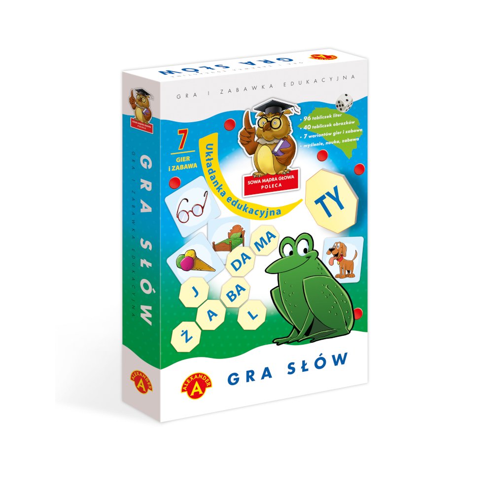 Zestaw gier słownych zróżnicowanych pod względem trudności, przystosowanych do odbiorców w różnym wieku – w zabawie dla najmłodszych, poznających dopiero znaki pisane, dzieci układają litery do wybranego obrazka, tak by utworzyć jego nazwę. Gry z tabliczkami literowymi i