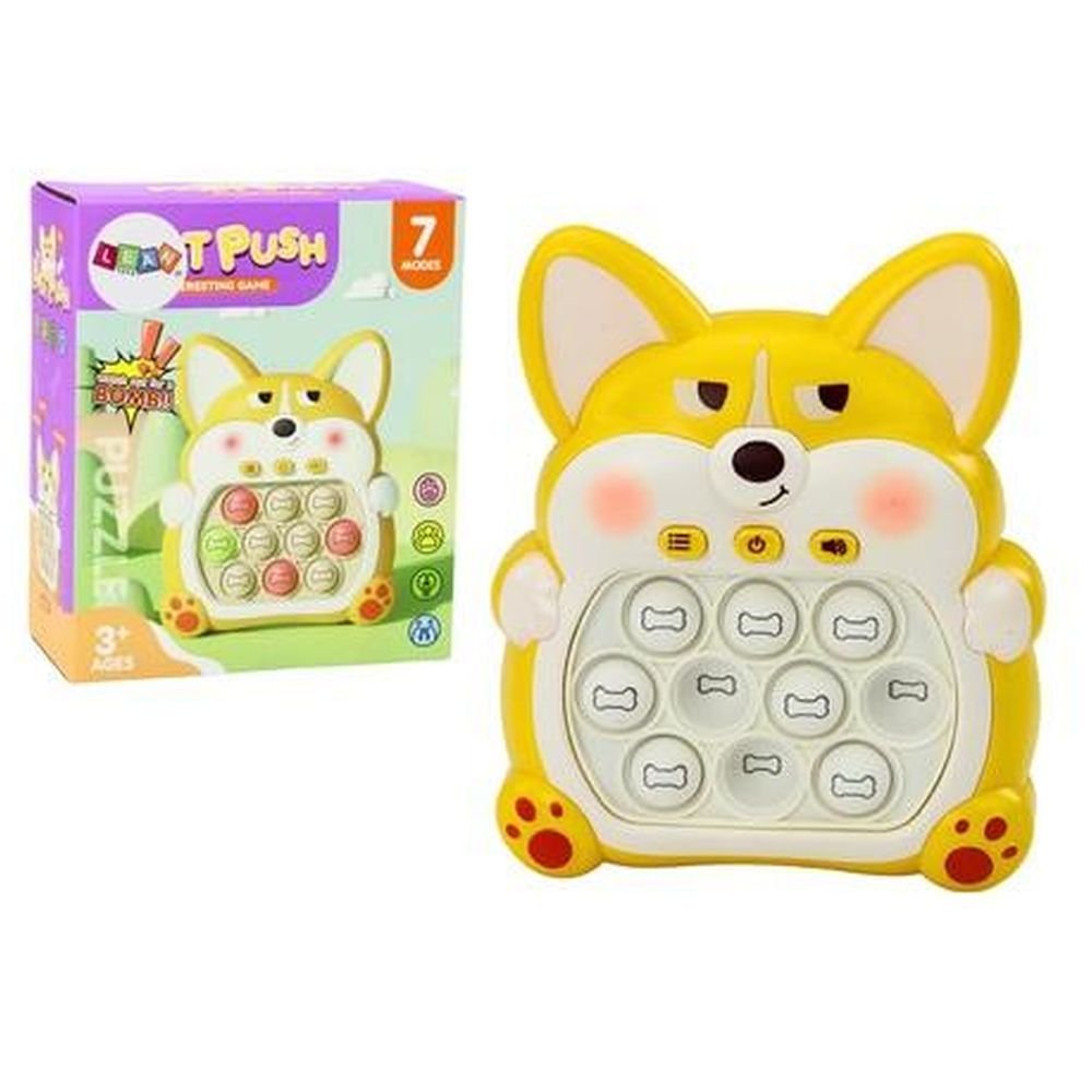 Gra Zręcznościowa Konsola Pop-It Lisek 7 Trybów Gry Żółty Gra pop-it lisek w kolorze żółtym to innowacyjna i angażująca zabawka, która nie tylko zapewnia rozrywkę, ale również rozwija kluczowe umiejętności dziecka. Jej atrakcyjny design z sympatycznym liskiem oraz żywe kolory sprawiają, że jest chętnie wybierana przez najmłodszych. Głównym zadaniem gracza jest wciśnięcie wszystkich zielonych wypustek na powierzchni gry. Każde wciśnięcie to trening dla spostrzegawczości i refleksu. Jednak gra staje się bardziej ekscytująca dzięki dodatkowej funkcji – czerwone wypustki, które działają jak bomby. Jeśli czerwona wypustka zaświeci się, gracz musi jej unikać, co wprowadza element ryzyka i strategii do zabawy. Gra pop-it oferuje również 6 innych trybów gry, co zapewnia różnorodność i sprawia, że zabawka nigdy się nie nudzi. Każdy tryb ma unikalne zasady i wyzwania, które wymagają od graczy różnych umiejętności i podejścia do rozgrywki. Dzięki temu dzieci mogą stale odkrywać nowe aspekty zabawy i rozwijać swoje zdolności na różne sposoby. Dodatkowym atutem gry są efekty dźwiękowe, które dodają dynamiki i emocji każdej rozgrywce. Dźwięki sygnalizują poprawne wciśnięcia oraz ostrzegają przed zbliżającą się bombą, co zwiększa zaangażowanie i ekscytację graczy. Gra pop-it lisek w kolorze żółtym to nie tylko świetna zabawa, ale także narzędzie edukacyjne. Poprzez wciskanie wypustek dzieci rozwijają swoje zdolności manualne, uczą się szybkiego reagowania na bodźce i podejmowania decyzji pod presją. To doskonały sposób na spędzenie czasu w sposób kreatywny i edukacyjny. Gra zasilana jest na baterie 3x 1.5V AAA, które nie są elementem zestawu. Wymiary gry: 14cm x 11,5cm x 5cm Wymiary opakowania: 14,5cm x 12,5cm x 6cm Posiada certyfikat CE, ponadto jest zgodny z normą EN71. Przeznaczony dla dzieci powyżej 3 roku życia.