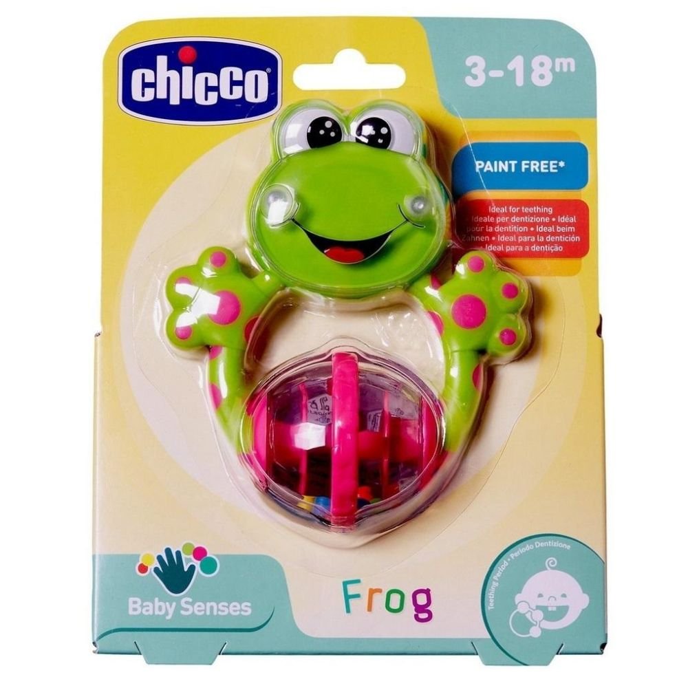 Lekka i łatwa do chwytania grzechotka w kształcie żaby z grzechoczącą, obracającą się kulką.