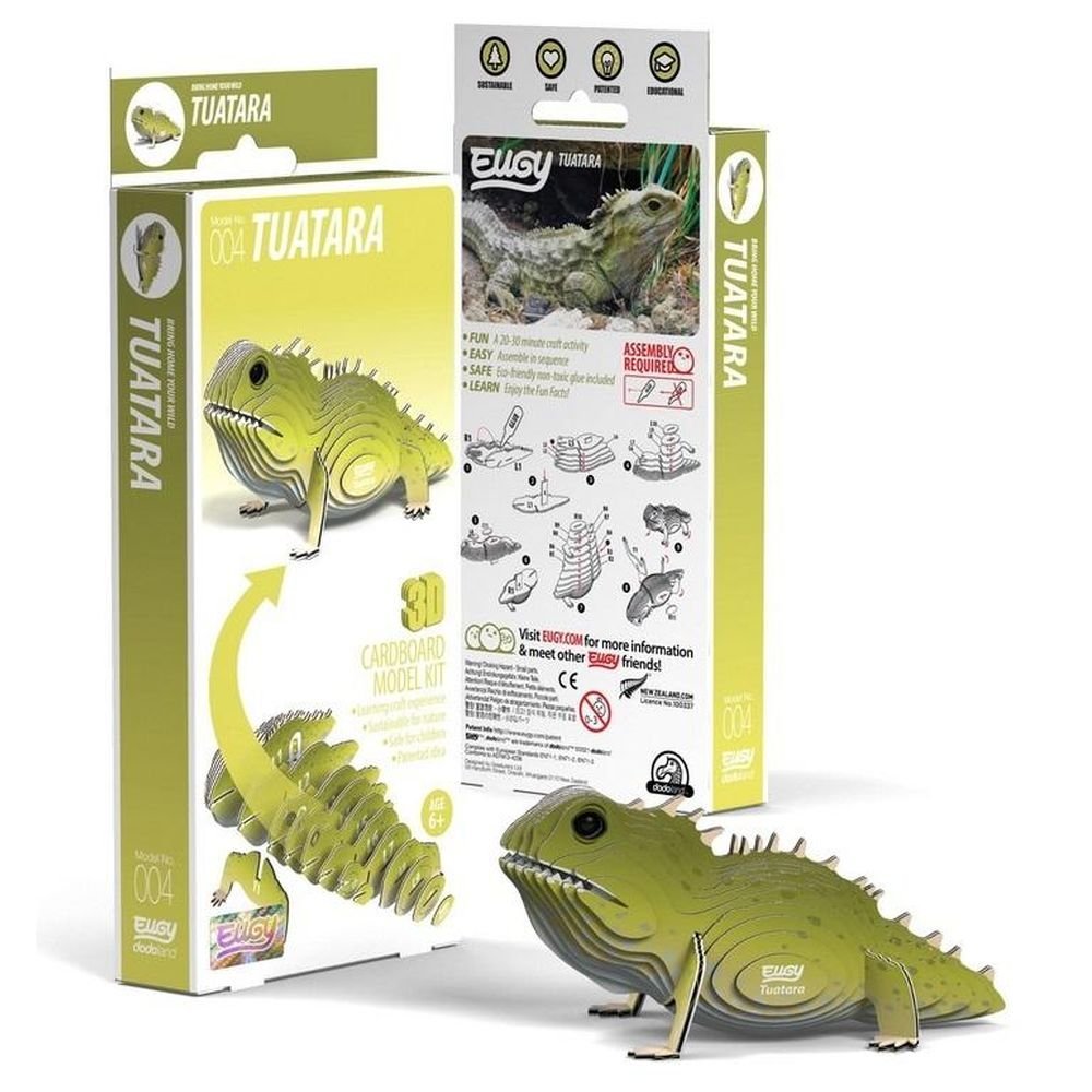 Eugy zaprojektowane w Nowej Zelandii są wykonane z przyjaznego dla środowiska kartonu pochodzącego z recyklingu i farby na bazie ryżu. Zestaw zawiera ponumerowane elementy układanki, nietoksyczny klej oraz instrukcję do zbudowania gada. Zbierz całą serię zwierząt, ptaków, dinozaurów i wiele innych. Dla dzieci w wieku 6 lat+.