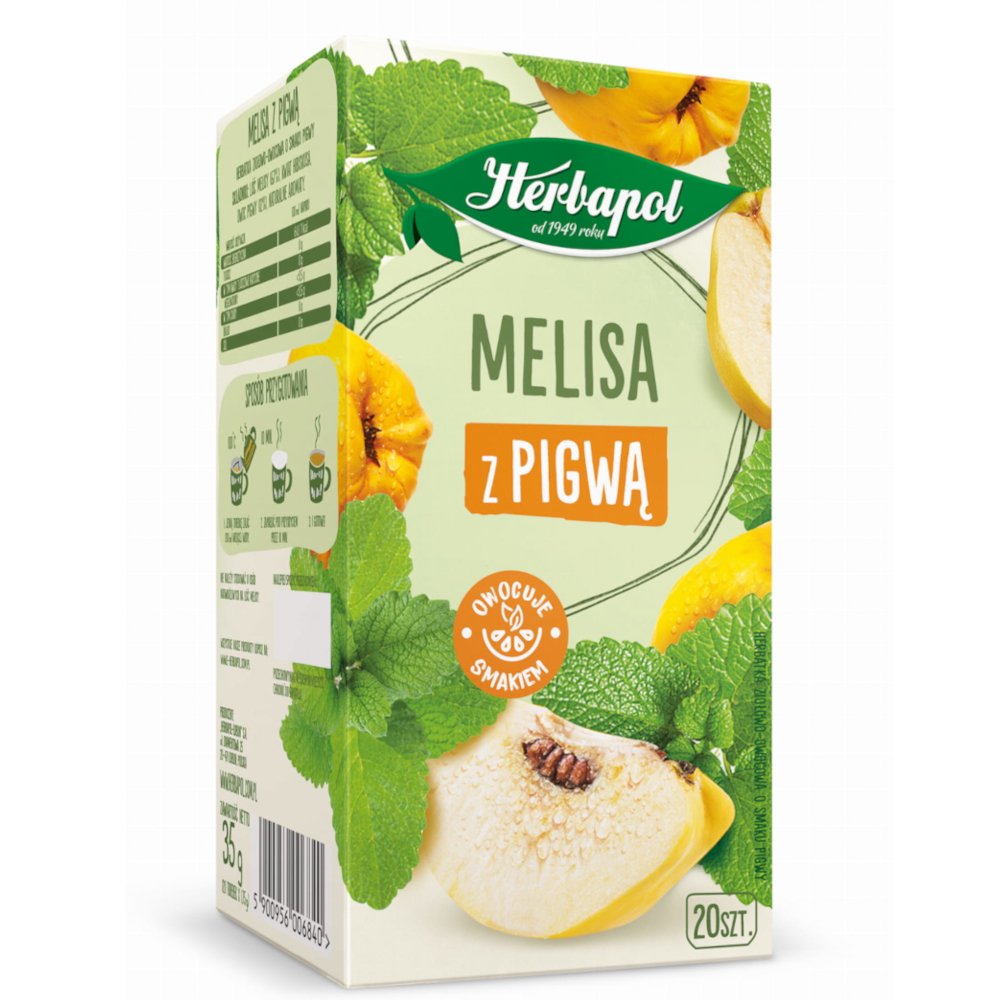 Aromatyczna melisa z pachnącą, orzeźwiającą pigwą. Melisa wspomaga fizyczne i psychiczne dobre samopoczucie, ułatwia odprężenie organizmu oraz wpływa korzystnie na spokojny sen.