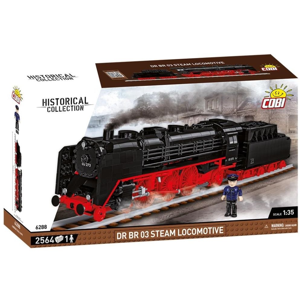 COBI-6288 DR BR 03 Steam Locomotive Historical Collection 2564 klocki 1 figurka Grupa wiekowa 10+ Skala: 1:35 Nowy potężny parowóz BR03 zbudowany z zawrotnej ilości 2564 klocków COBI ma aż 70 cm długości! Ta wspaniała lokomotywa ekspresowa dawniej ciągnęła ciężkie składy pasażerskie, rozpędzając je do zawrotnych 120 kilometrów na godzinę. Dziś może zapierać dech w piersiach, zasilając kolekcję każdego szanującego się fana kolei! Uwagę od razu przykuwają nowe duże koła przeznaczone dla lokomotyw ekspresowych. Lokomotywa ma odwzorowane wszystkie najważniejsze kształty swojego pierwowzoru. Jej zbita i trwała konstrukcja sprawia, że lokomotywa jest ciężka, ale jednocześnie doskonale działa. System obrotowych kół zębatych umieszczonych w ramie sprawia, że koła połączone wiązarami z tłokiem parowym obracają się jak w prawdziwej lokomotywie. Ciekawymi smaczkami konstrukcyjnymi jest: odwzorowana budka maszynisty z paleniskiem, przepustnicą i innymi ważnymi do sterowania lokomotywą elementami, a także otwierana dymnica. Do lokomotywy dołączony jest klockowy tender, niezbędny do jazdy parowozem. Rzeczywisty tender lokomotywy BR03 mieścił 32 metry sześcienne wody i 10 ton węgla. Klockowy tender wykonany jest w o tyle ciekawy sposób, ponieważ posiada zdejmowany ładunek węgla. Dzięki temu nasz tender może być pusty lub wyładowany węglem po brzegi. Model zawiera szczegółowe nadruki przedstawiające oznaczenia lokomotywy, Deutsche Reichsbahn oraz niezbędne tabele techniczne. W wersji standardowej otrzymujemy figurkę maszynisty Deutsche Reichsbahn w klasycznym mundurze kolejarskim oraz sześć odcinków toru prostego, na którym można wyeksponować lokomotywę. Lokomotywy klasy 03 budowano w latach 1930-1938 jako lokomotywy pociągów ekspresowych na trasach, na których nacisk na oś wynosił maksymalnie 18 ton. 298 egzemplarzy tej lokomotywy, której konstrukcja opierała się na lokomotywie klasy 01, wyprodukowały firmy Borsig, Krupp, Henschel i Schwartzkopff. Lokomotywy tego typu prowadziły najbardziej luksusowe i prestiżowe pociągi ekspresowe. Wchodziły także w skład kilku pociągów specjalnych."Amerika". Po wojnie lokomotywy BR03 trafiły do: RFN, NRD oraz PRL. -2564 wysokiej jakości elementów -wyprodukowane w UE przez firmę z ponad 35-letnią tradycją, -spełniają normy bezpieczeństwa dotyczące produktów dla dzieci, -w pełni kompatybilne z innymi markami klocków konstrukcyjnych, -klocki z nadrukami nie odkształcają się i nie bledną w czasie zabawy czy pod wpływem temperatury, -model w skali 1:35, -1 figurka, -sześć odcinków toru prostego, -PAD PRINTED, tylko trwałe nadruki, żadnych naklejek -Wymiary modelu (dł x wys): 71 cm (27.95") x 9 cm (3.54") x 13,5 cm (5.31")