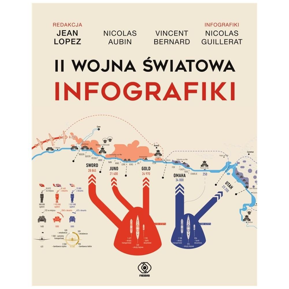 Na II wojnę światową. Infografiki składają się czterech części: "Aspekt materialny i ludzki", "Broń i armie", "Kampanie i bitwy" oraz "Bilans strat i zniszczeń". Opisują one sześćdziesiąt kluczowych tematów – jak problem zaopatrzenia w ropę naftową, struktura związków taktycznych i operacyjnych, operacja "Barbarossa", logistyka walczących państw, wojna na Pacyfiku, eksploatacja okupowanej Europy, wojna na pustyni – przedstawiających ten wielki globalny konflikt przystępnie, a zarazem nieszablonowo.