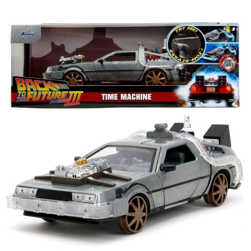 Metalowy pojazd oparty na serii filmów Powrót do przyszłości. Posiada gumowe opony oraz otwierane elementy. Dodatkowo posiada funkcje światła.