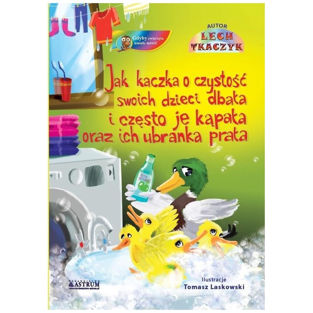 Autor Lech Tkaczyk napisał dla dzieci bajkę pod tytułem JAK KACZKA O CZYSTOŚĆ SWOICH DZIECI DBAŁA I CZĘSTO JE KĄPAŁA ORAZ ICH UBRANKA PRAŁA.Pięknie napisany tekst pomaga milusińskim odpowiedzieć na takie pytania jak: Czy kaczki lubią się kąpać? Dlaczego kaczki dbają o czystość? Po co prać swoje ubranka? Kto jest najlepszym praczem wśród zwierząt? Co jest najważniejsze w życiu? Często niezwykle trudno odpowiedzieć na te najprostsze pytania naszych pociech. Plączemy się i gubimy w wyjaśnieniach, a wystarczy sięgnąć po odpowiednią lekturę. Obserwując zwyczaje zwierząt nasze pociechy lepiej zrozumieją otaczający nas świat, rządzące nim prawa, nie tylko przyrody. Autor wierszowanej bajki JAK KACZKA O CZYSTOŚĆ SWOICH DZIECI DBAŁA I CZĘSTO JE KĄPAŁA ORAZ ICH UBRANKA PRAŁA Lech Tkaczyk w sposób prosty, żywy i zabawny udziela odpowiedzi na te pytania. A słuchanie bajki audiobooka-czytanej przez Paulinę Raczyło z pewnością spodoba się Twojemu maluchowi i zaspokoi jego ciekawość.Lech Tkaczyk zgodnie ze sprawdzoną zasadą nauka poprzez zabawę, w nowatorski i ciekawy sposób zaznajamia dzieci z życiem zwierząt. Posługując się prostym i dowcipnym językiem oraz wykorzystując klasyczną formę wierszowaną w swojej opowieści zaszczepia w maluchach zamiłowanie do wiedzy o przyrodzie,zachowaniach zwierząt. Autor tekstu, Lech Tkaczyk, w prosty i przystępny sposób,z pewnością pobudzi wyobraźnię każdego dziecka. Niebywałe walory edukacyjne sprawią, że Twoja pociecha w zaskakującym tempie zapamięta jak powinien zachowywać się Twój maluch w gościach,pozna dobre obyczaje.Aby uatrakcyjnić pracę z dzieckiem, możesz skorzystać z płyty CD, zawierającej audiobook będący wiernym odzwierciedleniem treści bajki.Piosenkę KACZUSZKA śpiewa Monika Kozłowska. Muzykę do piosenki skomponował Mieczysław Stępień.