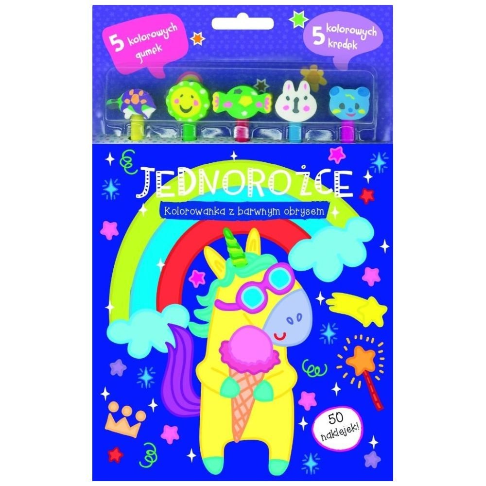 Ten wyjątkowy zestaw został przygotowany dla małych artystów. Dzieci znajdą w nim kolorowanki z barwnym obrysem, 5 kolorowych kredek oraz 5 kolorowych gumek. Dodatkową atrakcją są naklejki, którymi można ozdobić swoje prace. Świetna zabawa gwarantowana!