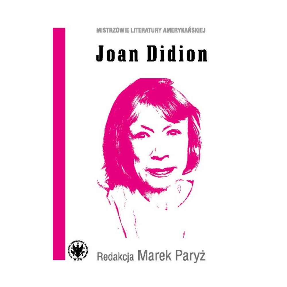 Joan Didion amerykańska powieściopisarka, dziennikarka, eseistka i autorka scenariuszy – Często pisała o swoich korzeniach i krytycznie patrzyła na historyczne dziedzictwo rodzinnego regionu, pokazując, że determinacja pionierów wypaczyła ich mentalność, ponieważ kształtowała skłonności wsobne i eksploatacyjne. Jej książkowym debiutem była powieść Rzekobieg (1963), a sławę przyniosły dwa zbiory esejów i reportaży opisujących Amerykę doby kontrkultury: Dryfując do Betlejem (1968) oraz Biały album (1979). Na początku nowego stulecia Didion odniosła wielki sukces dzięki książce Rok magicznego myślenia (2005) przejmującym pamiętniku żałoby po śmierci męża.