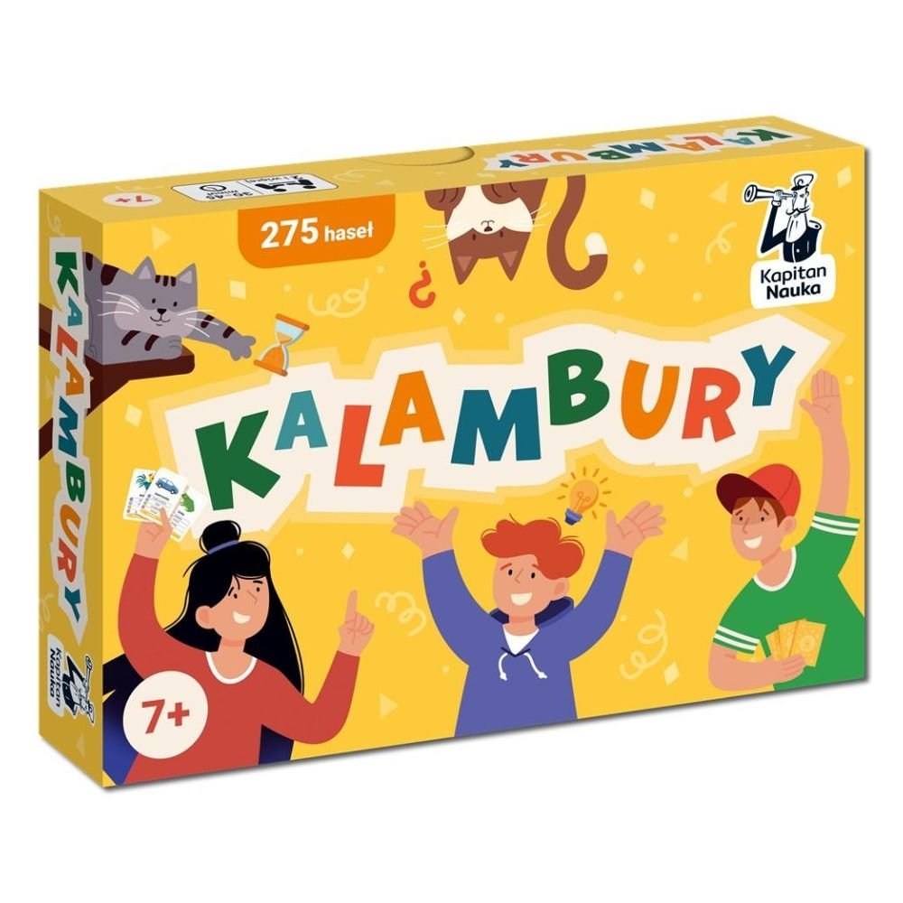 Kalambury to żywiołowa gra towarzyska, która sprawdzi się podczas rodzinnych wieczorów czy spotkań ze znajomymi. Na każdej karcie znajduje się hasło z ilustracją dla młodszych graczy oraz dodatkowe hasła, które można z sobą miksować, tworząc zabawne kombinacje.