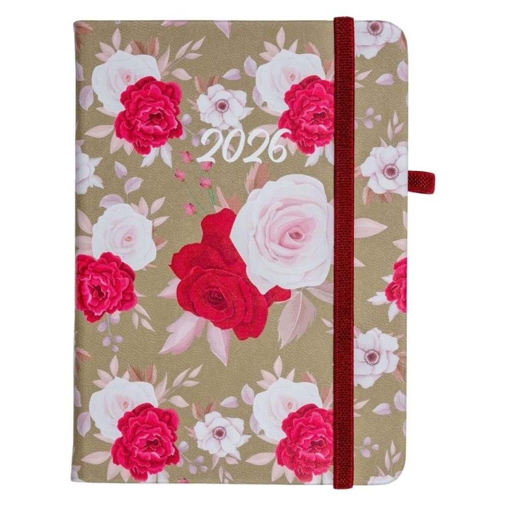 wewnątrz: plan roku i rozkład roku 2026, terminy ferii zimowych, święta oficjalne i zwyczajowe, podróże, protokół powypadkowy w przypadku stłuczki, notes, skorowidz teleadresowy, kalendarium dodatkowe na 2025-2026-2027 rok