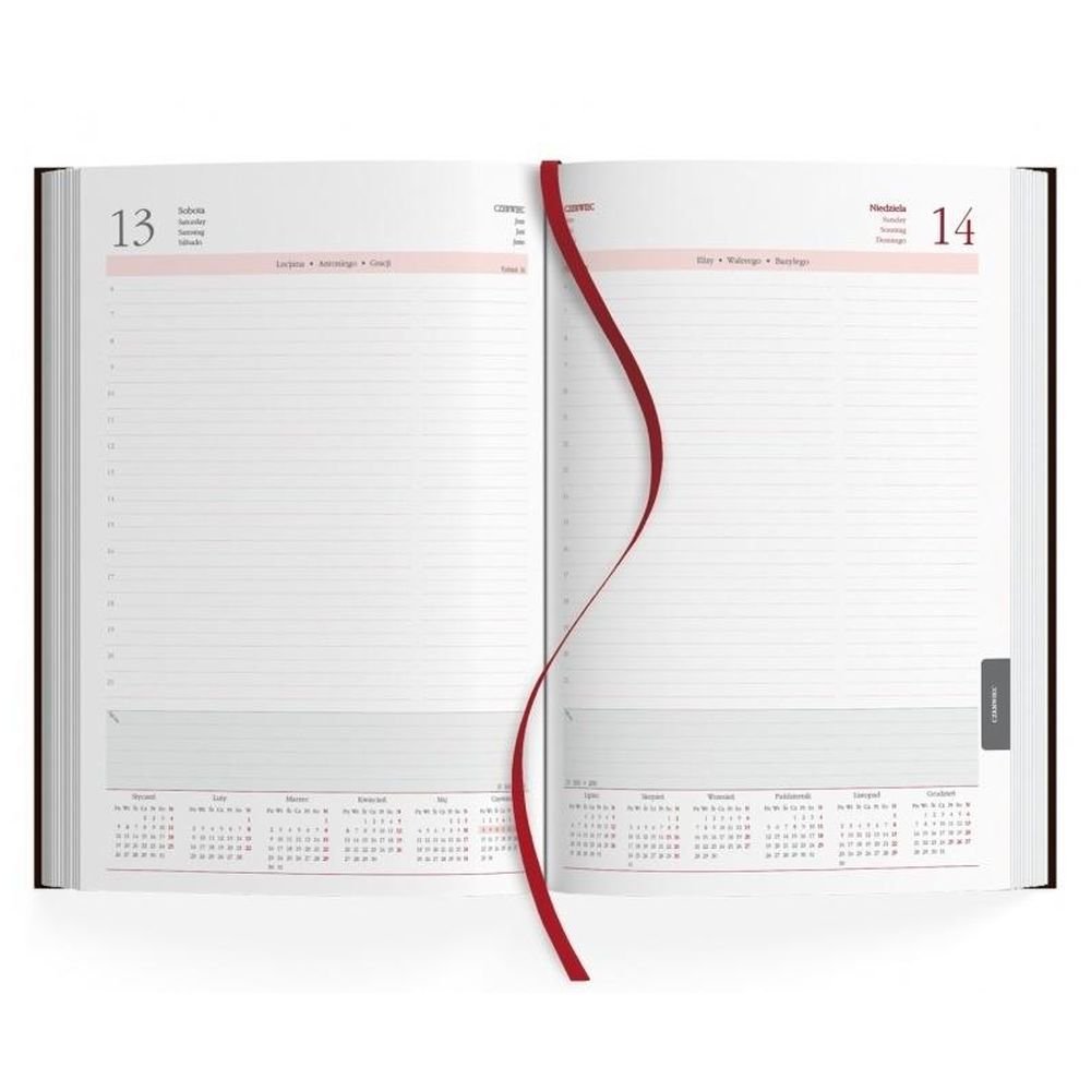 w języku polskim, angielskim, niemieckim, hiszpańskim, numeracja dni i tygodni, potrójne imieniny, perforacja narożników