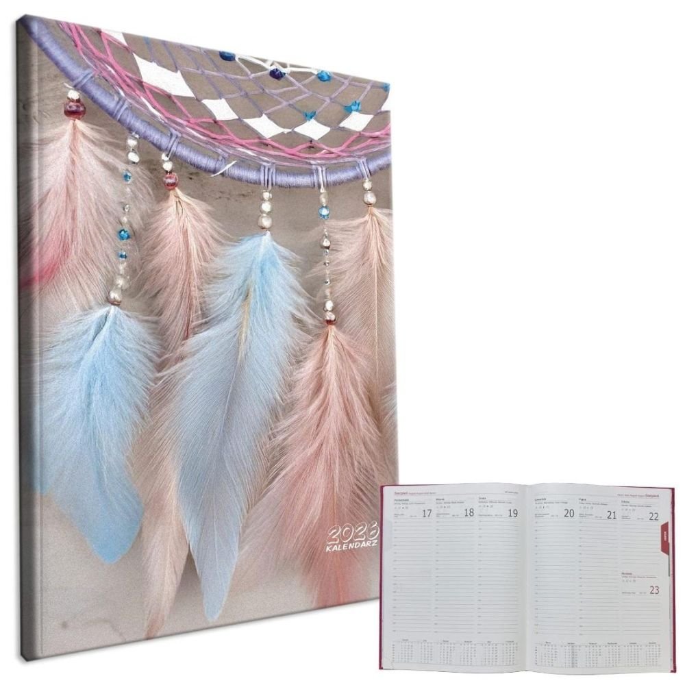 kalendarz formatu A4, układ tygodniowy, okładka aksamitna soft touch, papier chamois