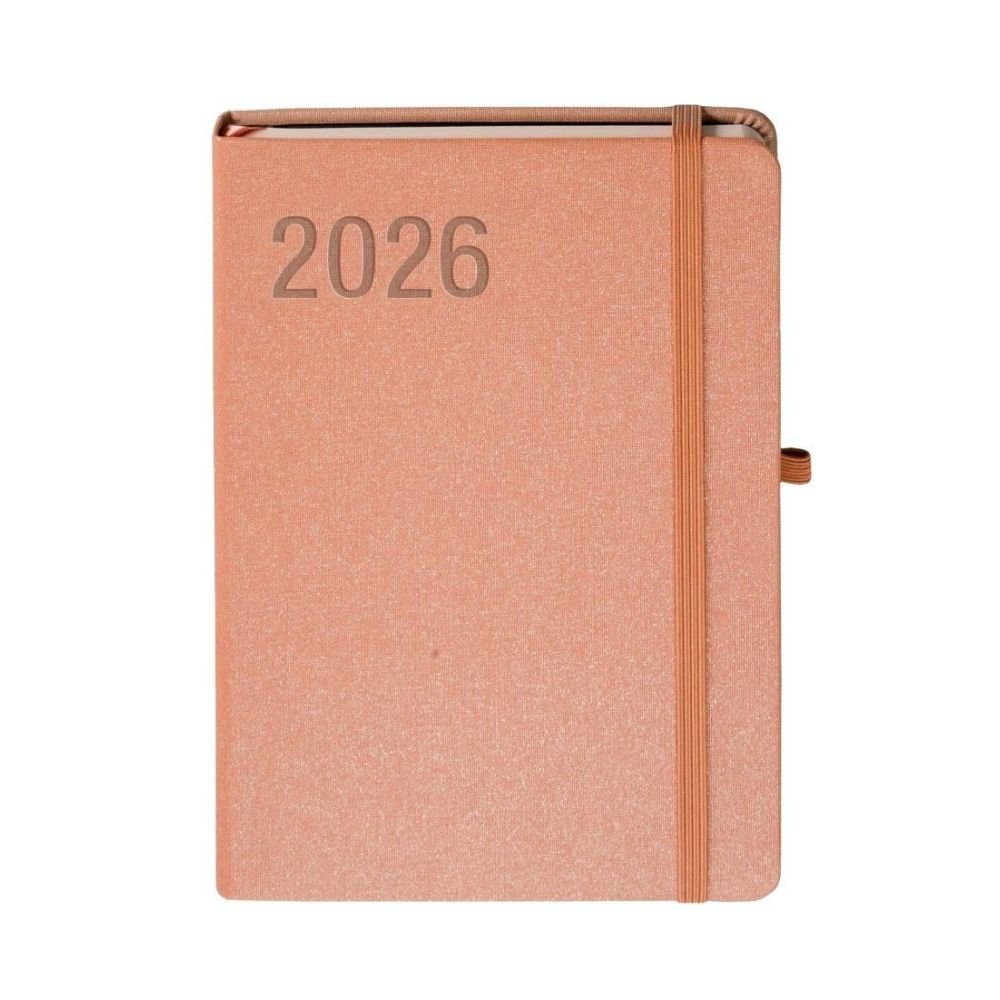 Kolekcja: Sakura , Format: A5, wymiary okładki: 210×145 mm, układ: tydzień na stronie, ilość stron: 144, oprawa: twarda, materiał: skóra ekologiczna, gramatura papieru: 80g, kolor papieru: off white, dodatki: plan roku 2026, ważne wydarzenia, skorowidz adresowy, notatki, pionowa gumka zamykająca: w kolorze okładki, wstążka: w kolorze okładki, gumka na długopis: w kolorze okładki, zaokrąglone rogi: tak, wyklejka: kremowa, koperta: tak.